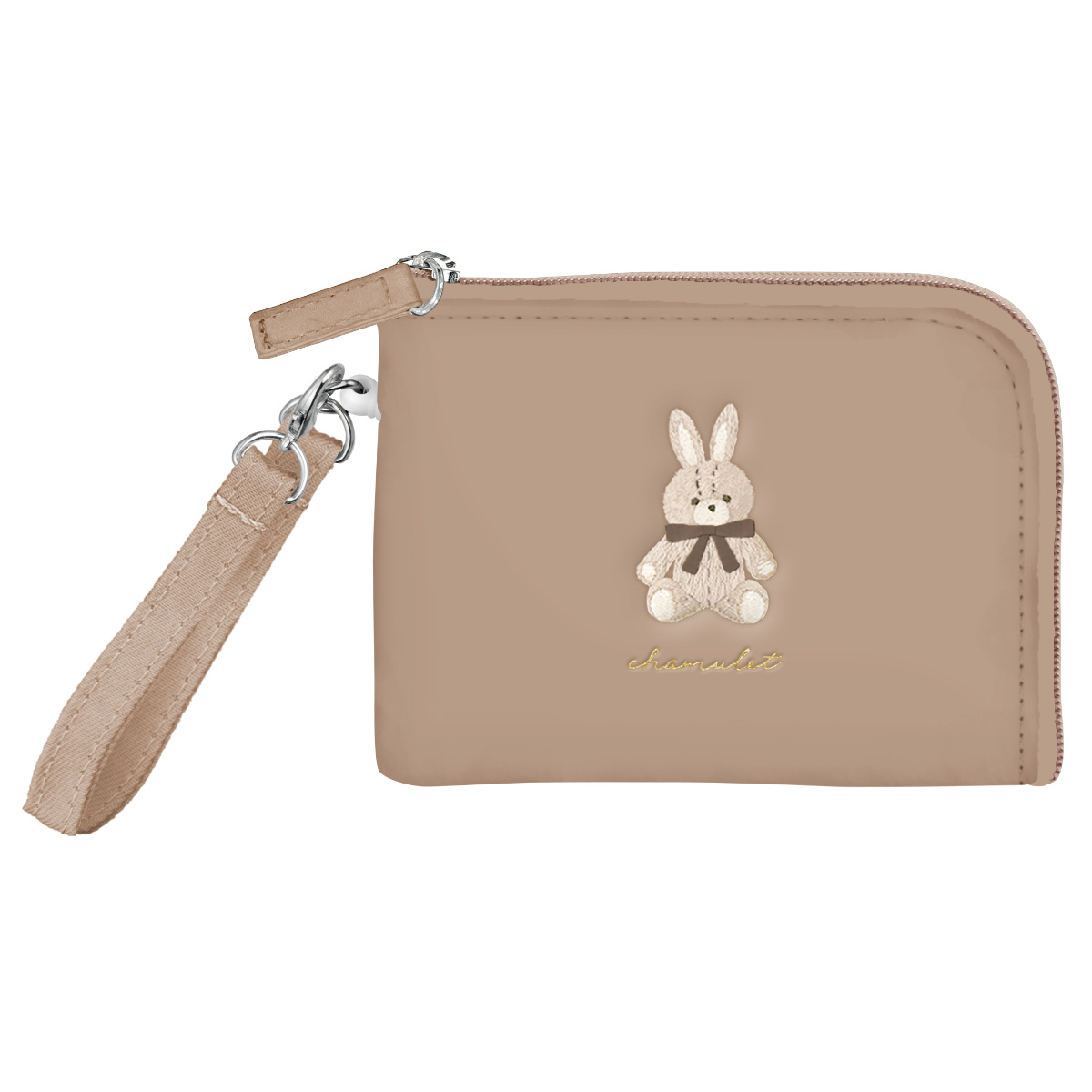 定期入れ チャミュレット デイリーポーチ 小物入れ ( 小物収納 化粧ポーチ コスメポーチ 小銭入れ パスケース 定期入れ 小さめ ICカードケース リール付き 背面ポケット 刺繍 女の子 かわいい アニマル 通勤 通学 ) 【ウサギ】
