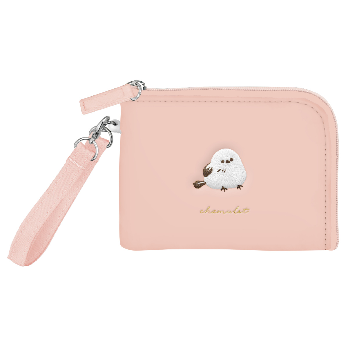定期入れ チャミュレット デイリーポーチ 小物入れ ( 小物収納 化粧ポーチ コスメポーチ 小銭入れ パスケース 定期入れ 小さめ ICカードケース リール付き 背面ポケット 刺繍 女の子 かわいい アニマル 通勤 通学 ) 【シマエナガ】