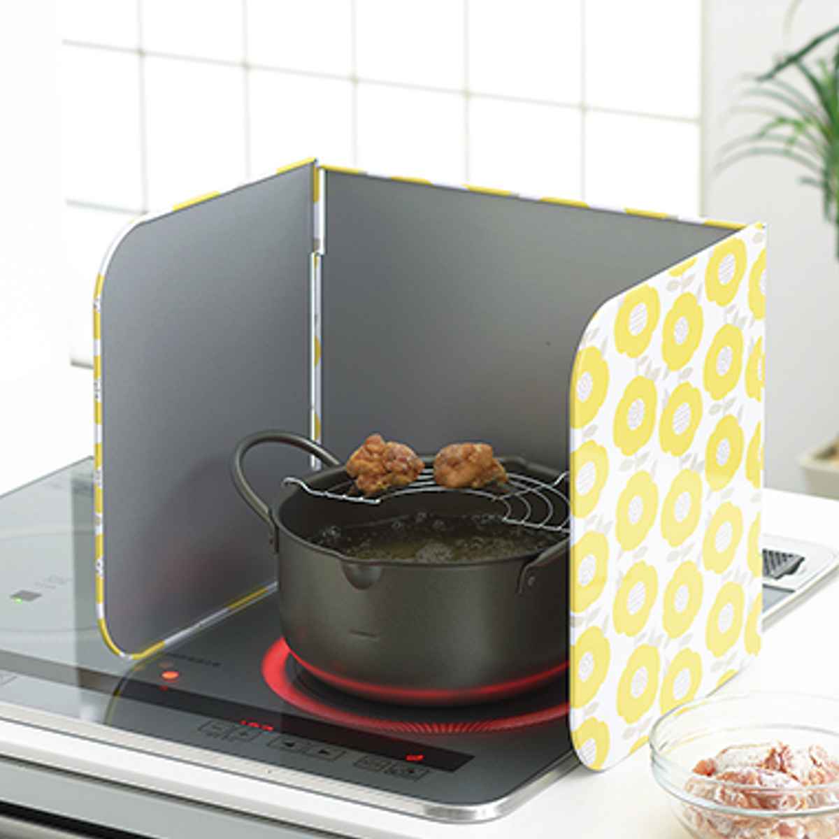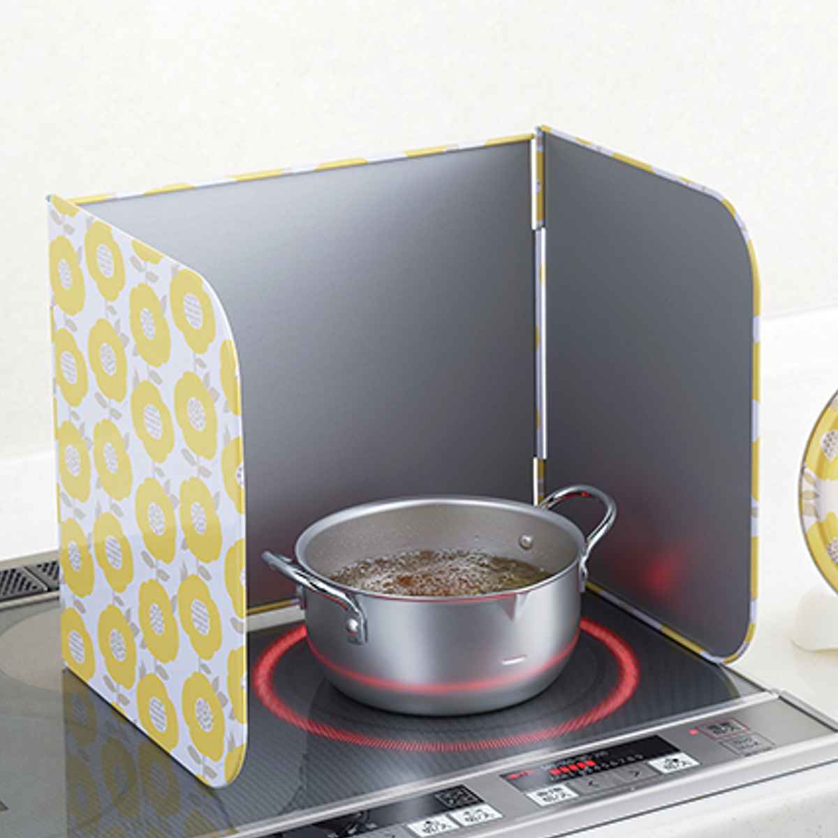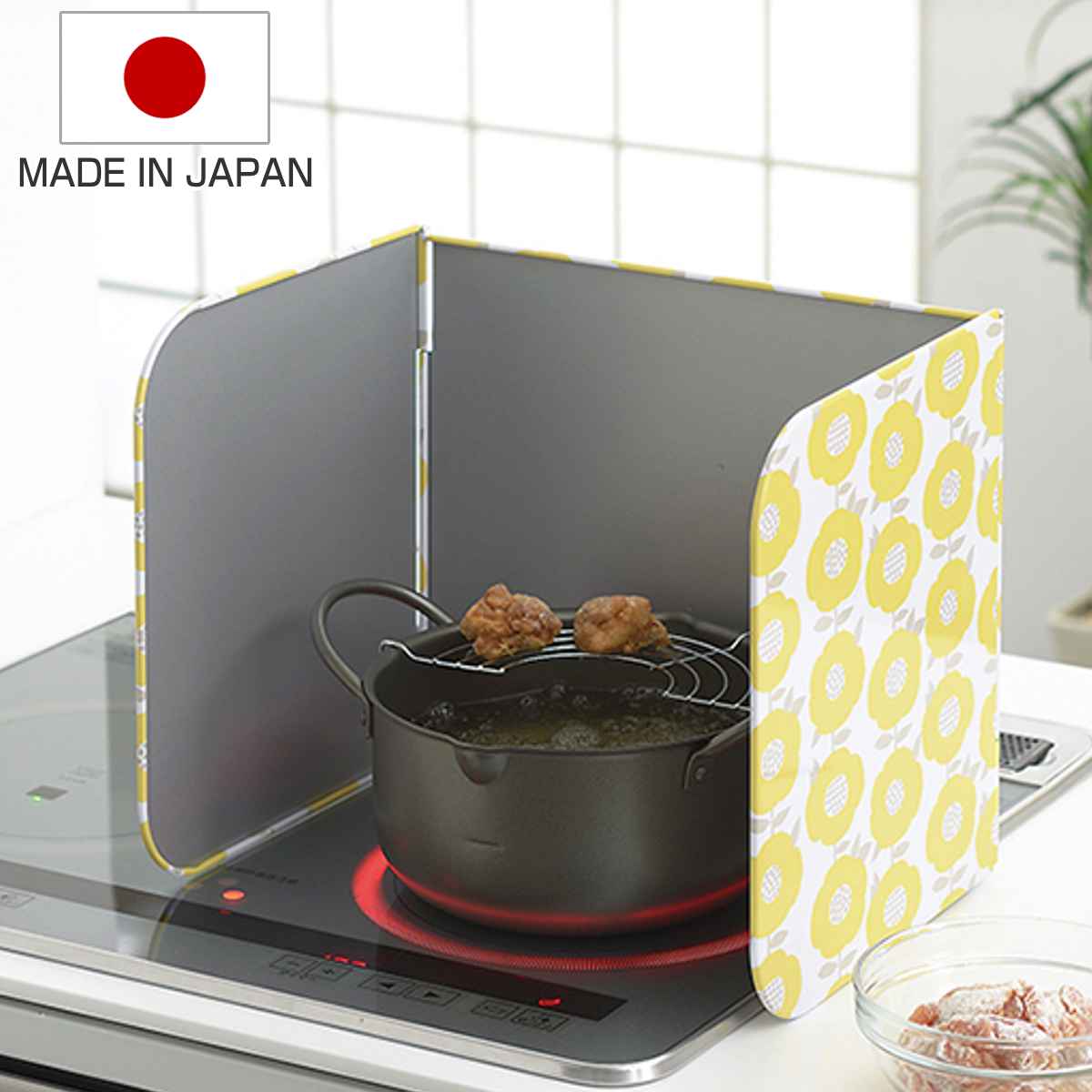 レンジガード Plune. コンパクトオイルガード ( プルーン 折りたたみ フッ素樹脂加工 日本製 花柄 油はねガード オイルガード 油はね防止 コンロ ガスコンロ 汚れ防止 油汚れ ガードプレート 揚げ物ガード 簡単設置 コンパクト )