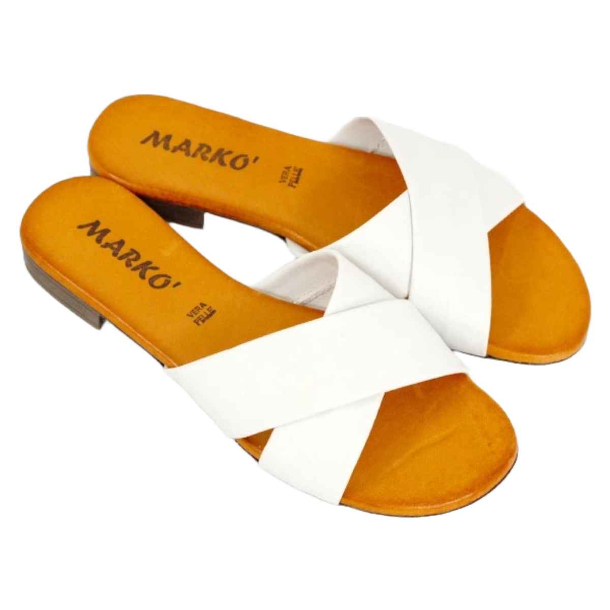 サンダル MARKO レザーサンダル 23cm~24cm ( マルコ 本革 レザー フラット 牛革 靴 シューズ ぺたんこ ミュール おしゃれ ぺたんこサンダル レディース 履きやすい ローヒール 23cm 24cm ) 【ミルク(L)】