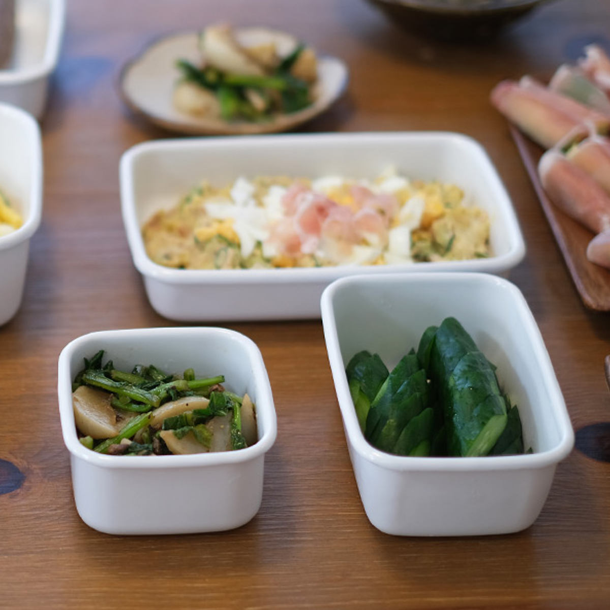 どんな料理にも合うシンプルなデザインと清潔感のあるホワイトシリーズは、下ごしらえや常備菜の保存だけでなく、そのまま食卓に出しても絵になる美しいデザインも魅力です。また琺瑯はニオイ移りもせず汚れも付きにくい為、お手入れも簡単です。