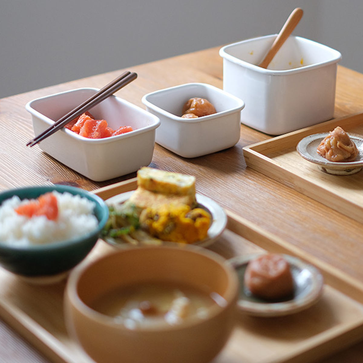 琺瑯はそのまま直火やオーブンにかけることが可能です。お出汁をたくさんとって冷凍しておけば、必要な時に温め直してすぐにお味噌汁を作る、なんてことも出来てしまいます。保存した食材をそのまま直火にかけられれば、料理の幅が広がり時短にも。