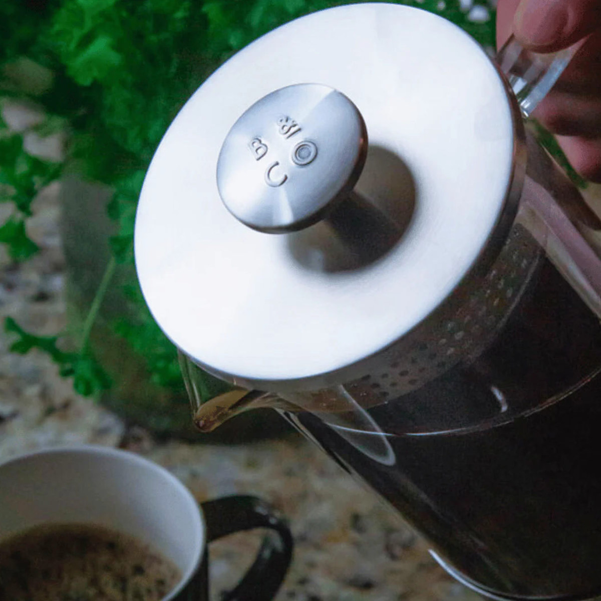 コーヒープレスのつまみ部分にはBarista&Co のロゴが記されています。