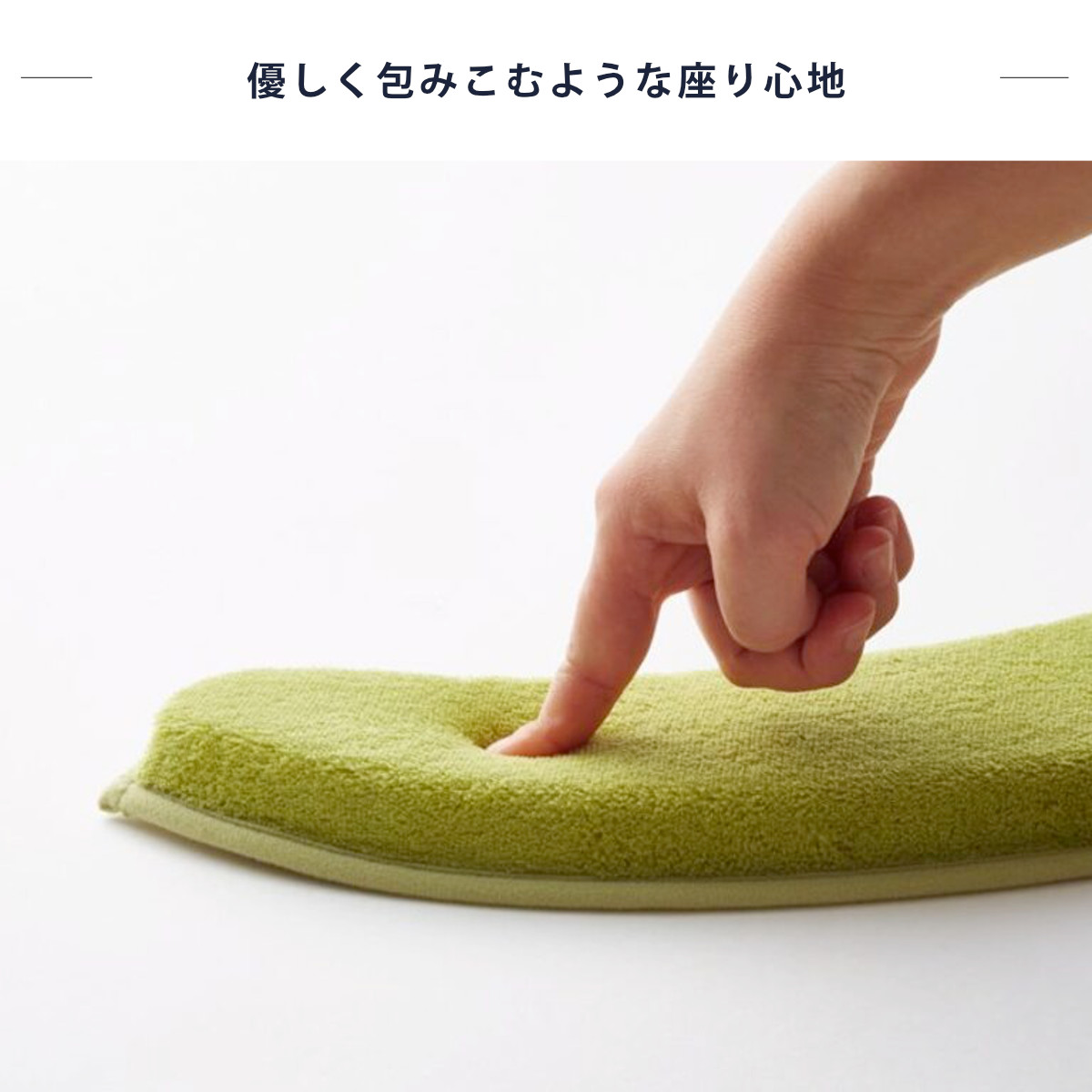 約2.5cmの厚みで、柔らかさ・クッション性があります。体圧分散効果で広い範囲に座ることができ、優しく包みこむような座り心地で長時間でも快適に過ごせます。