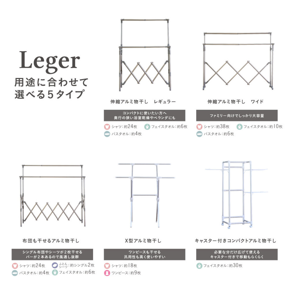 物干し 室内 室外 布団干し Leger 布団も干せるアルミ物干し ( ハンガー 物干しスタンド 洗濯 布団 日本製 軽量 アルミ ランドリー 衣類 折り畳み コンパクト キャスター 省スペース シンプル )