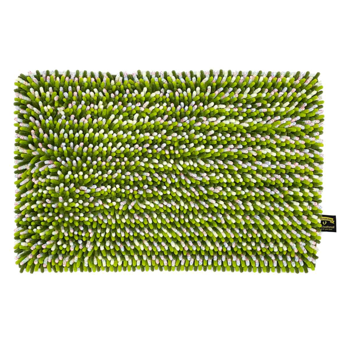 ピンク、グリーン、ブルーの3カラー展開です。ミックス糸を使用した立体感のあるデザインと明るいビビットカラーがバスルームのアクセントになります。マットを敷くだけでお風呂場が明るい雰囲気になります。
