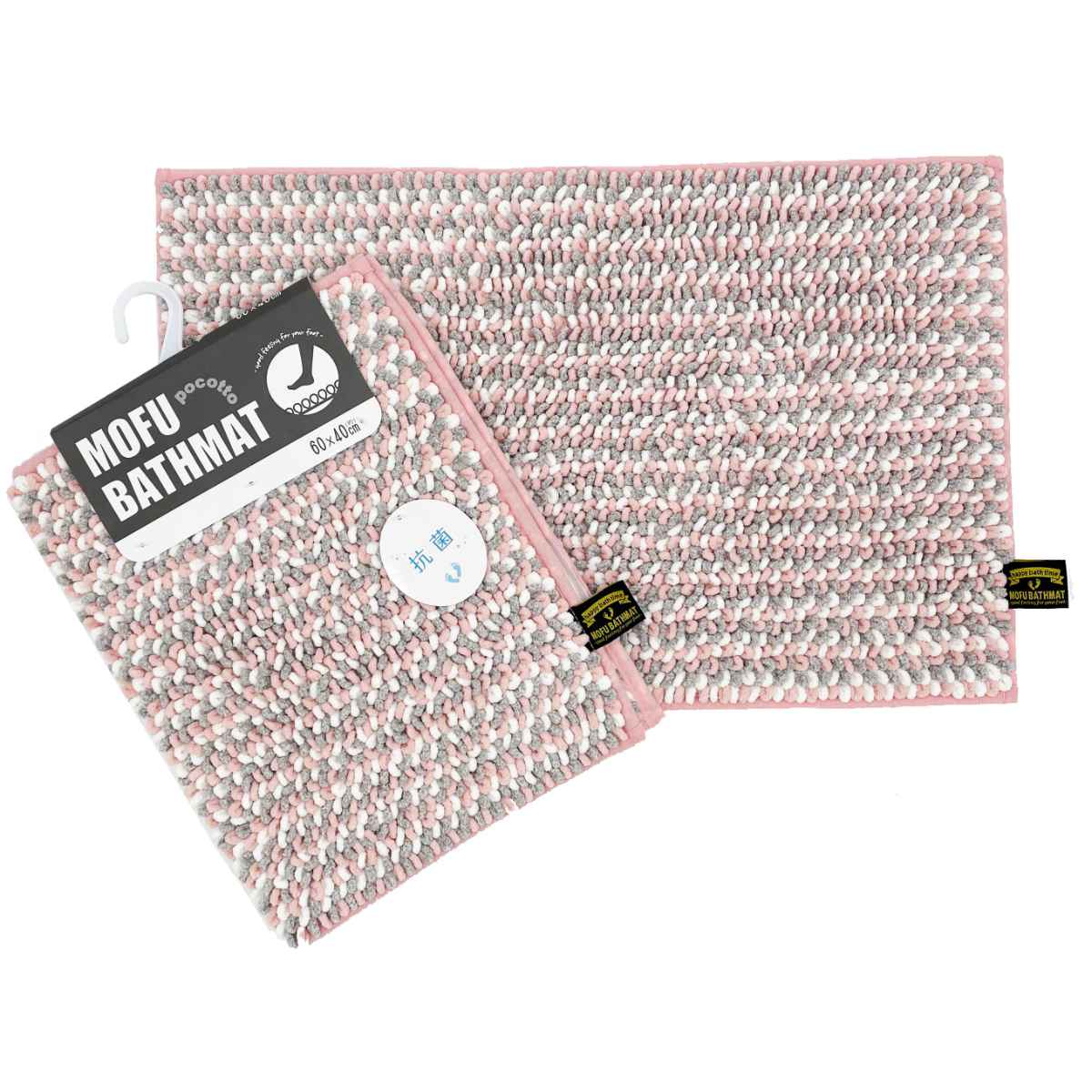 ピンク、ブルー、ネイビーの3カラー展開です。ミックス糸を使用した立体感のあるデザインと浴室にも馴染む落ち着いたカラーで、マットを敷くだけでバスルームが一気におしゃれな空間になります。