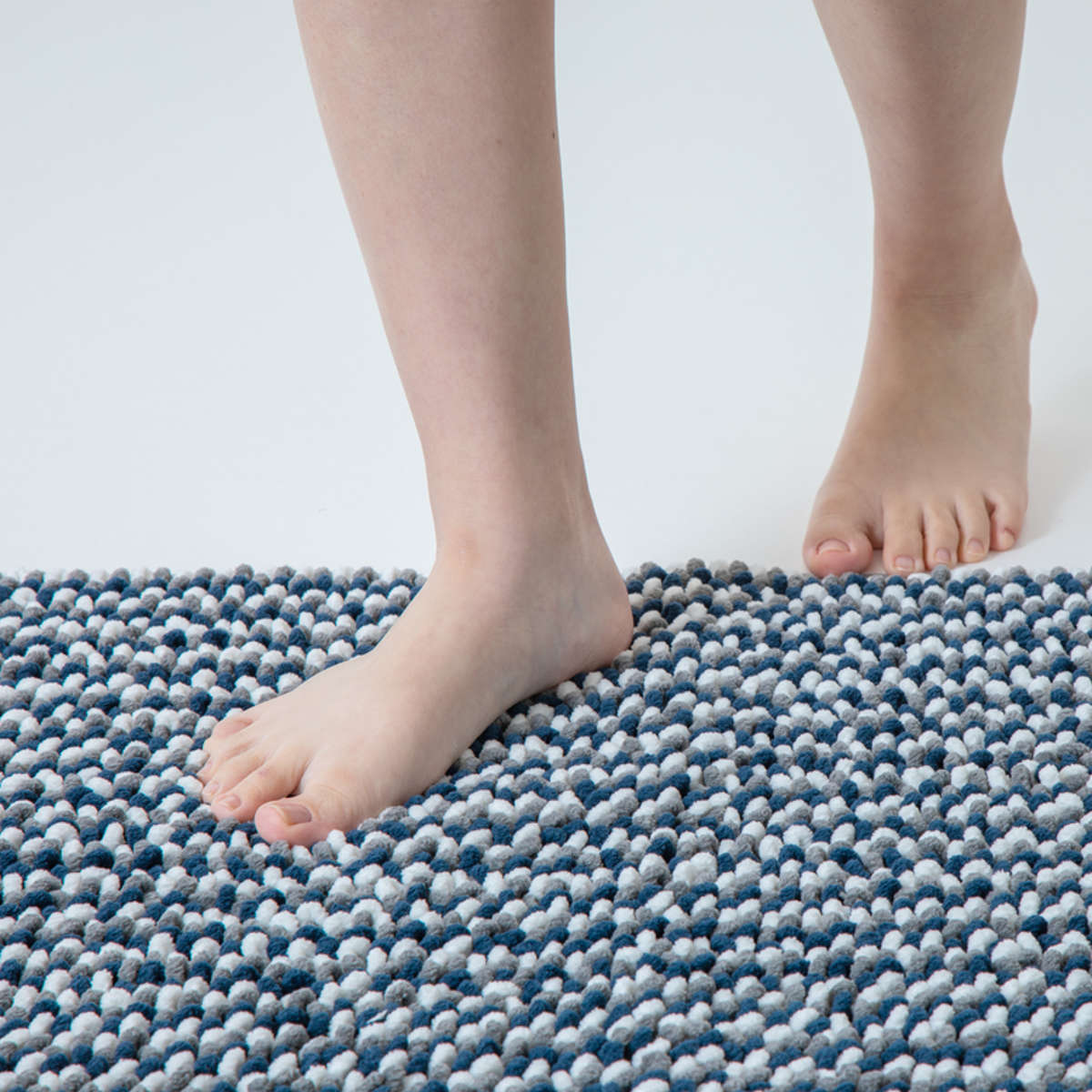 ピンク、ブルー、ネイビーの3カラー展開です。ミックス糸を使用した立体感のあるデザインと浴室にも馴染む落ち着いたカラーで、マットを敷くだけでバスルームが一気におしゃれな空間になります。