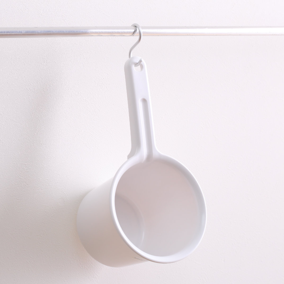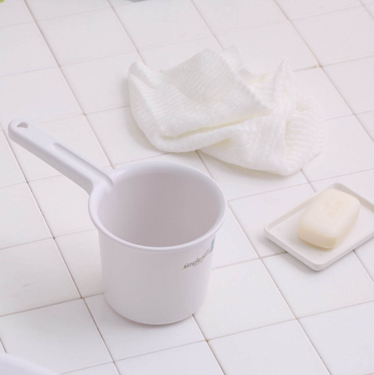 手になじみ、誰でも持ちやすいように設計されています。お湯汲みがしやすく、かけ湯にもぴったりです。