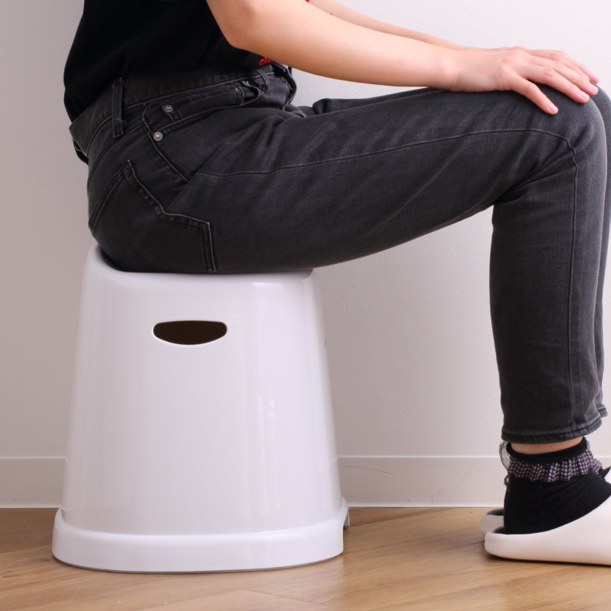 幅広の座面がお尻を包み込むようにフィットし、どなたでも安心してお使いいただけます。女性はもちろん、男性が座っても安定感があります。