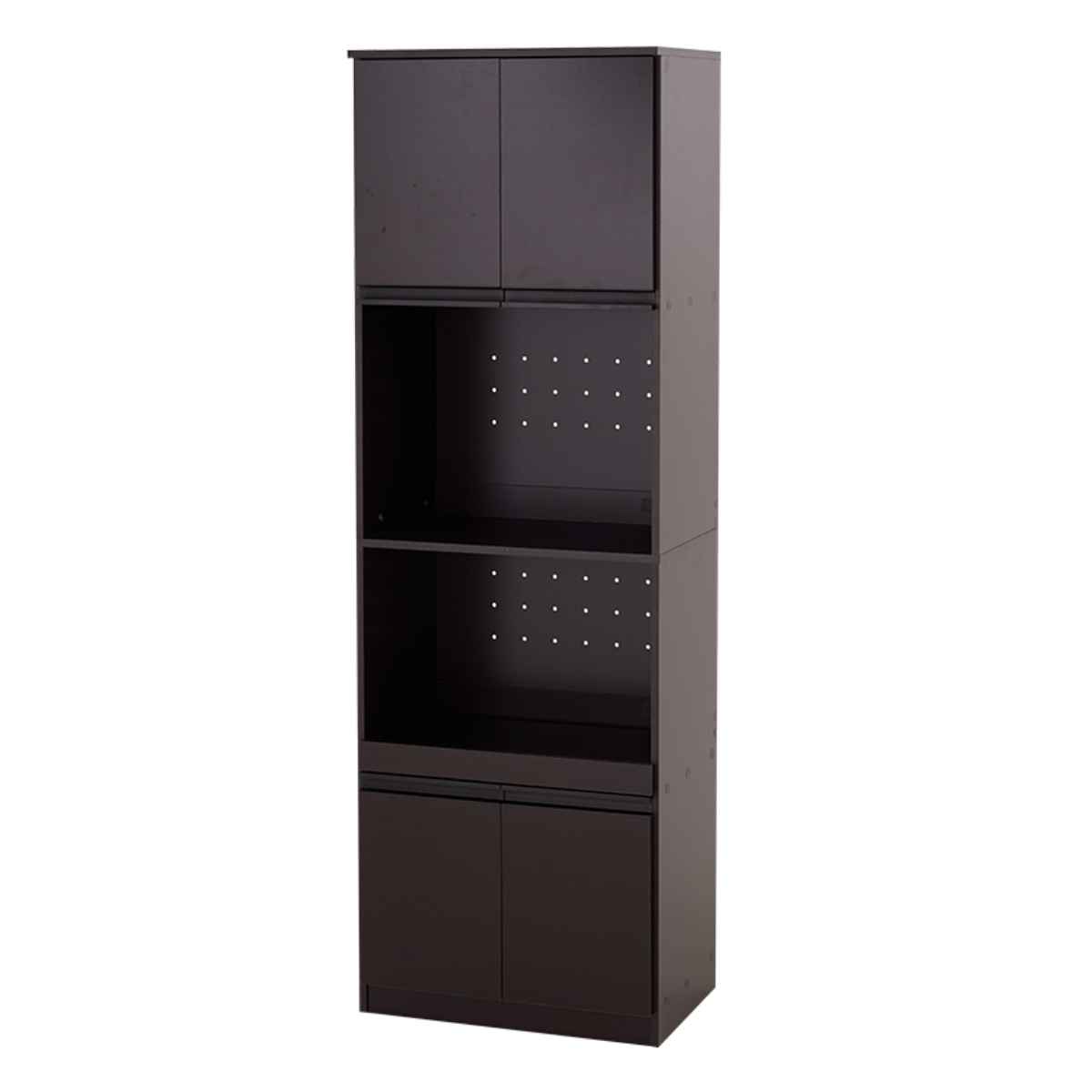 キッチンボード 北欧風 スライド棚付 幅60cm ( レンジラック 食器棚 ラック キッチン 収納 スライド棚 棚 キッチンラック ダークブラウン ナチュラル ホワイト コンセント付 可動棚 ) 【ダークブラウン】
