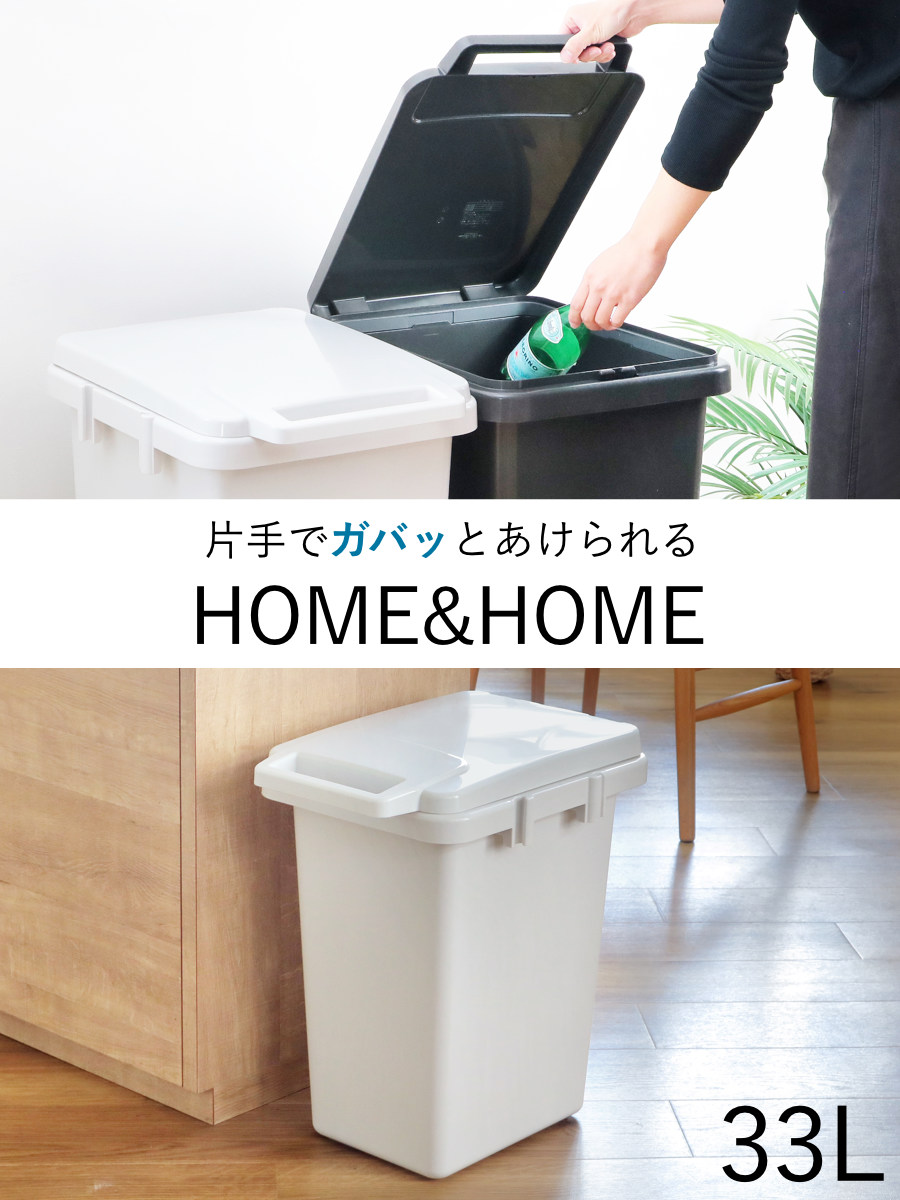 ゴミ箱 33L 連結 屋内外兼用 片手で開く連結ダストボックス HOME&HOME ( ごみ箱 33リットル 屋外 屋内 兼用 ふた付き 分別 シンプル 大容量 連結ダストボックス 袋止め付き 角型 外用 屋外用 無地 ベーシック ) 【ダークグレー】