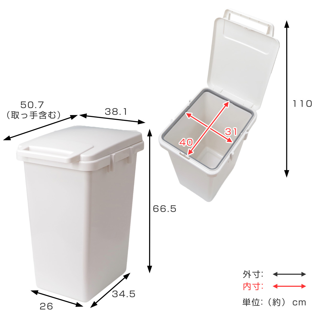 | サイズ | 約 幅38.1×奥行50.7×高さ66.5(cm) ふたを開けた時の高さ:約 110(cm) |
