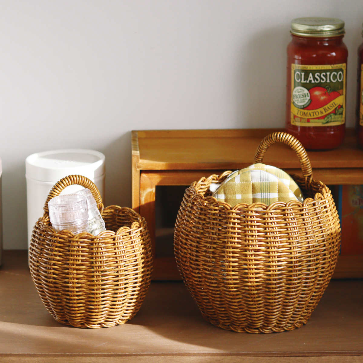 キッチンや洗面周りの小物入れにも