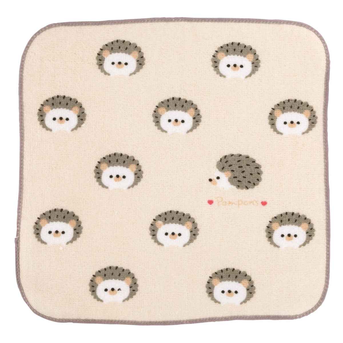 ミニタオル 20×20cm Pompon’s ( ミニ タオル 手拭き ハンカチ タオルハンカチ 綿100 ミニハンカチ ウォッシュタオル ネームタグ付 手ふき 手洗い キャラクタータオル ) 【ハリネズミ】
