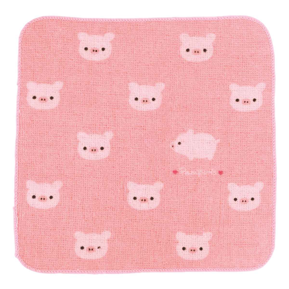 ミニタオル 20×20cm Pompon’s ( ミニ タオル 手拭き ハンカチ タオルハンカチ 綿100 ミニハンカチ ウォッシュタオル ネームタグ付 手ふき 手洗い キャラクタータオル ) 【ブタ】