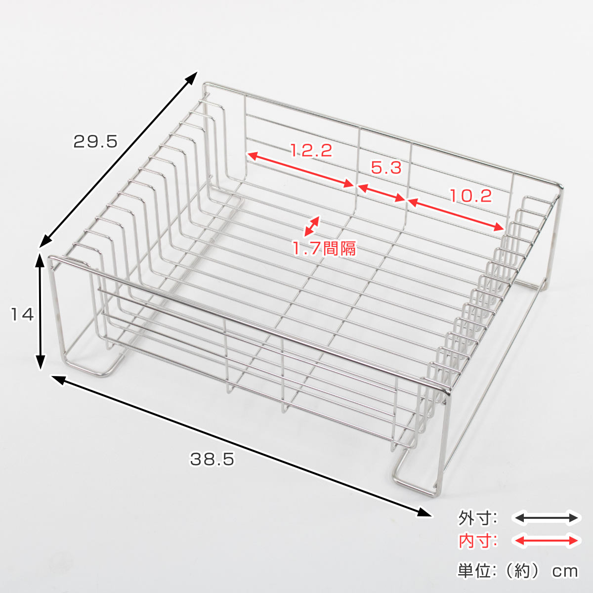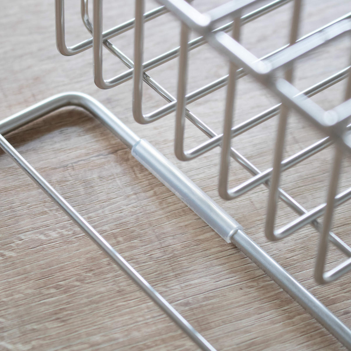 お皿のフチをしっかり支えて、お皿が倒れにくいように設計されています。広々としたワイヤー間隔でお皿が並べやすく、空気に触れやすいので乾きが早いです。