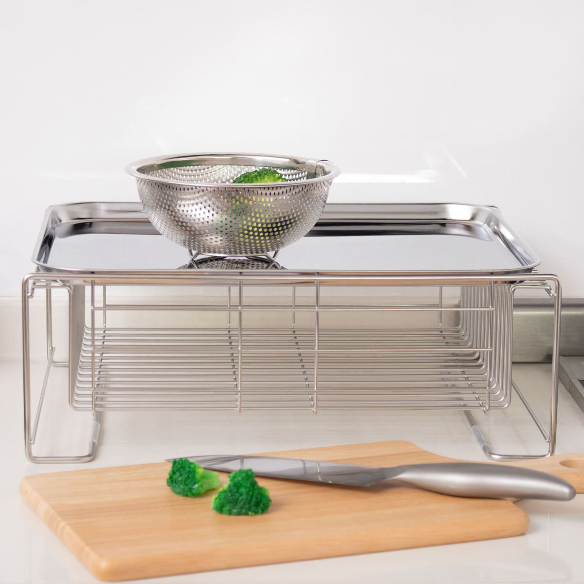 水切りラック サポート台にもなる 頑丈水切りバスケット ステンレス 日本製 ( カトラリーポケット付き サポート台 水切りバスケット 水切りかご 水切りカゴ 水切り籠 水切り 洗い物 食器 鍋 洗い 乾燥 ラック 一時置き 丈夫 )
