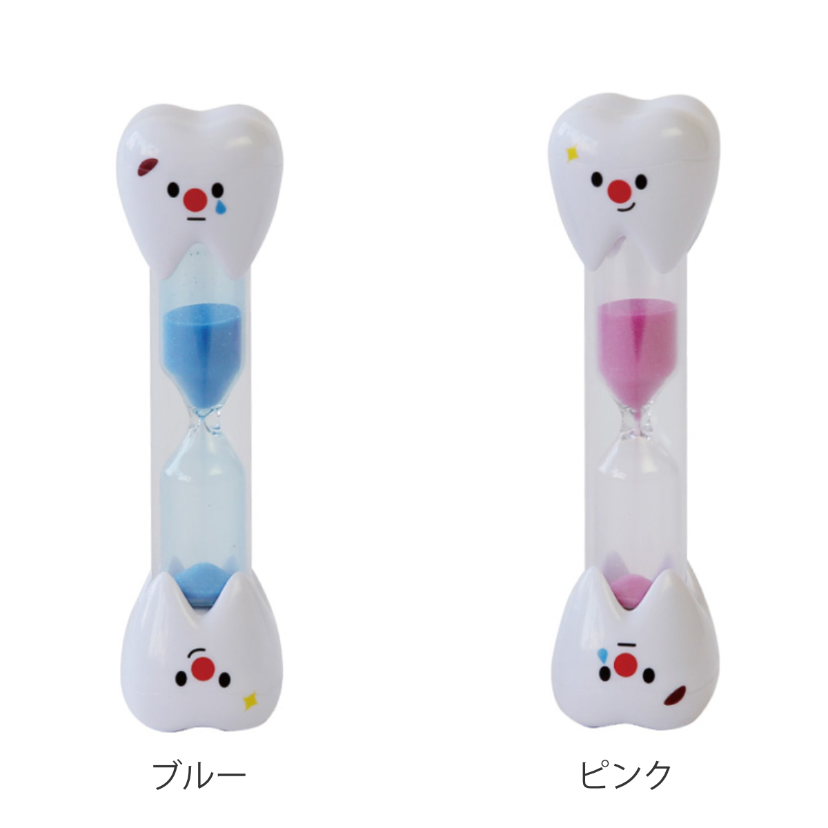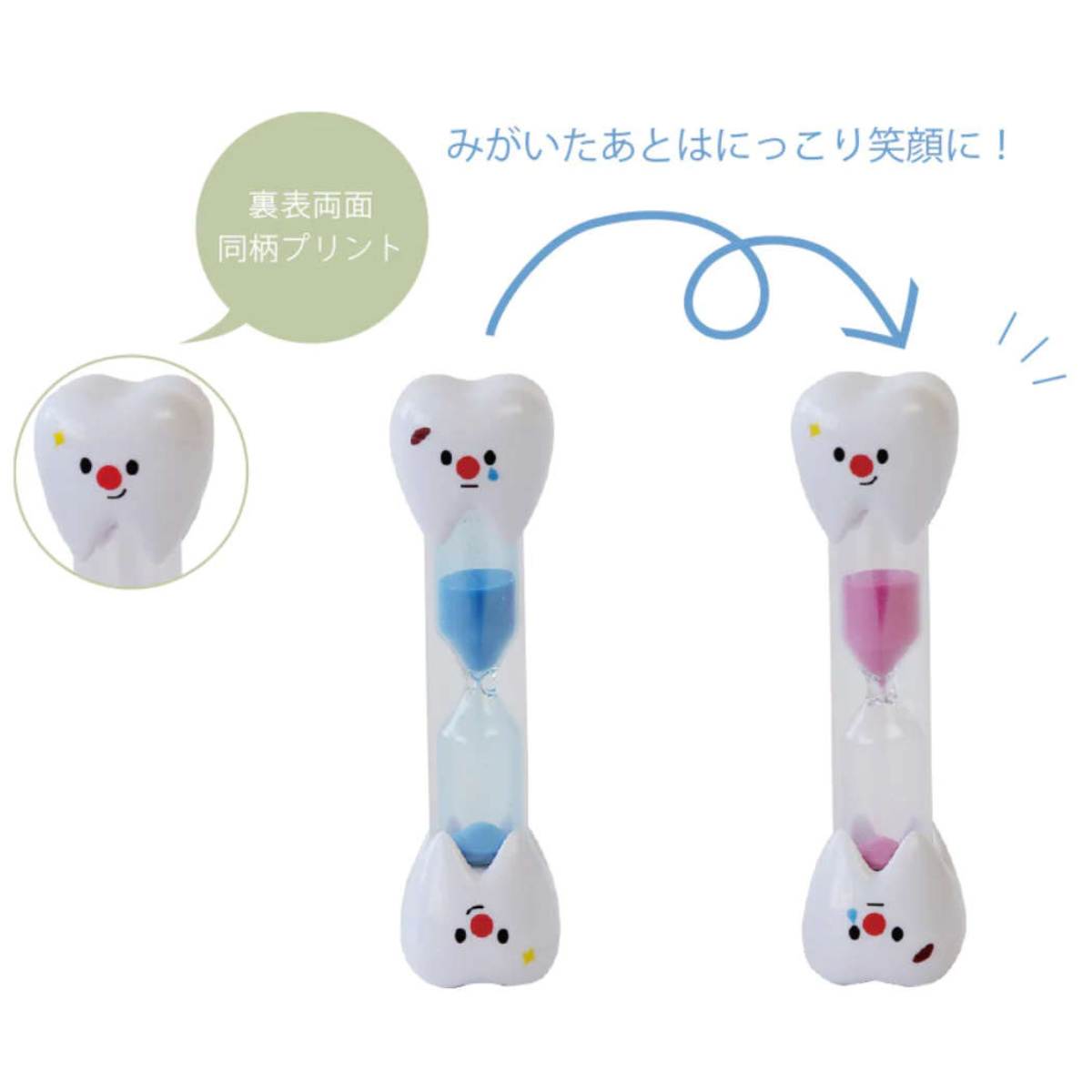 歯をモチーフにデザインされた歯みがき用の可愛い砂時計です。お子さんのいやいや歯みがきも、これがあれば楽しく磨けそうですね。健康を目指す歯みがきは3分間と言われています。毎日規則正しく磨いて、虫歯でイタイイタイちゃんをにっこり笑顔ちゃんに変えましょう。