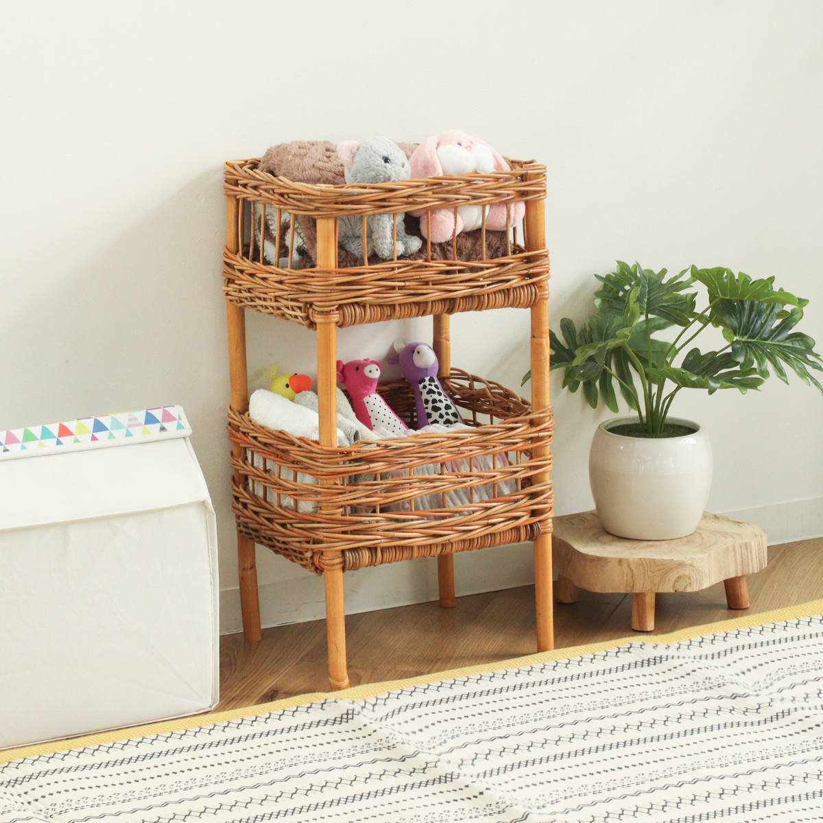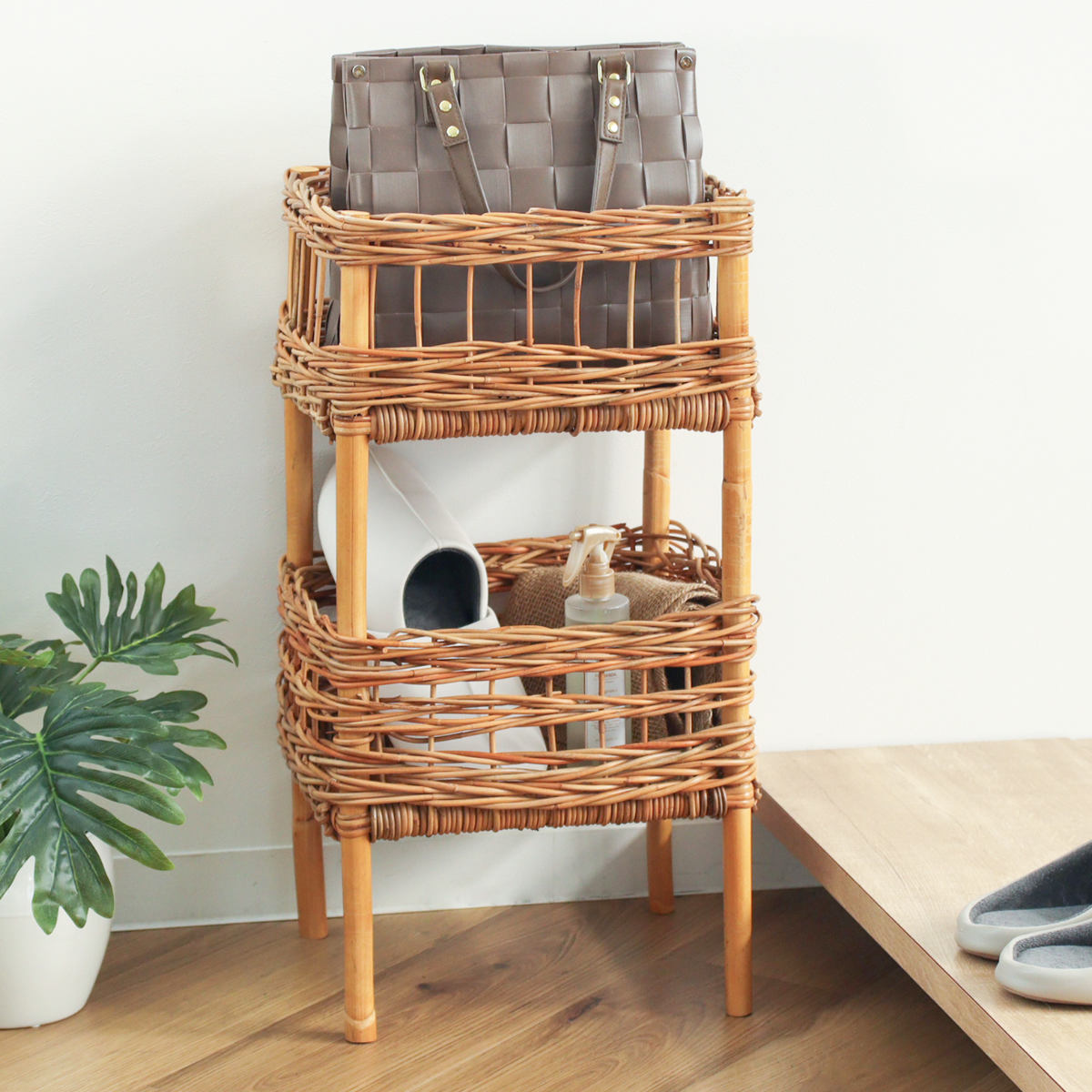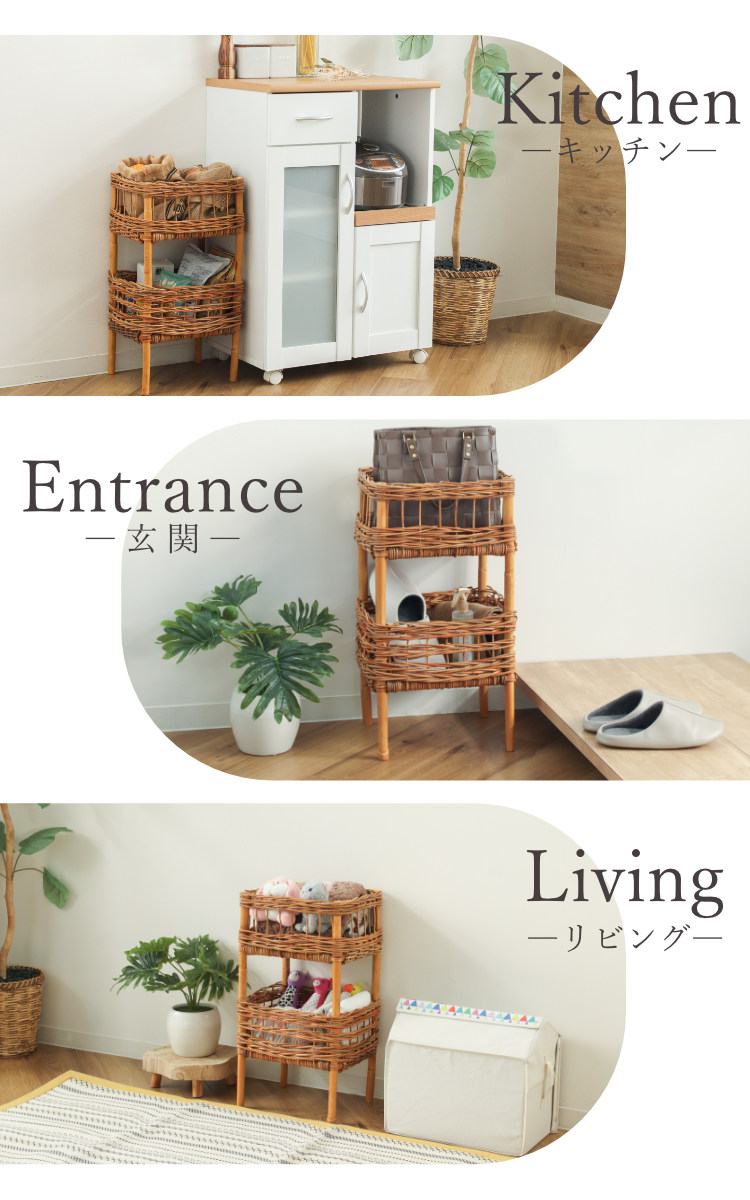ラタンバスケット 2段 幅34cm AROROG 籐 ラタン 軽量 おしゃれ ( 収納ラック ランドリー収納 洗面所収納 リビング収納 玄関収納 キッチン収納 脱衣所 洗濯かご 棚 小物収納 洗面所 ランドリーラック コンパクト 省スペース スリム )