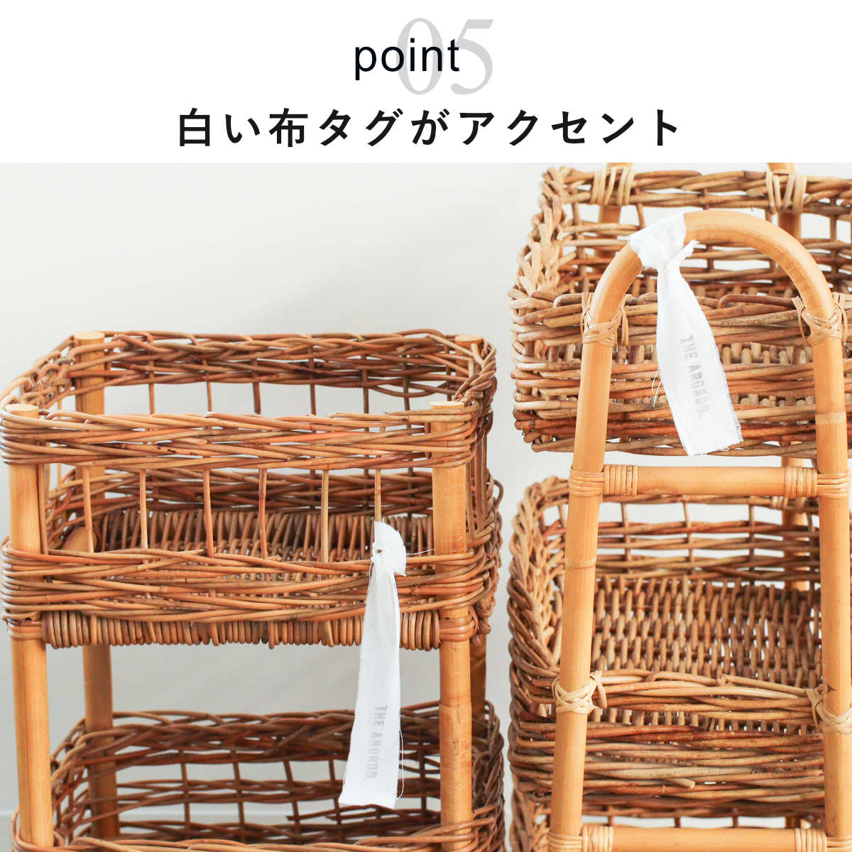 こちらの商品は天然素材を使用し、一点一点丁寧に手作りしています。そのため、素材の色の違い、黒い斑点やささくれ、表皮のはがれ等が生じる場合がございます。これらは不良ではなく、天然素材特有の風合いによるものですので、ラタン製品の味わいとしてお楽しみ下さい。