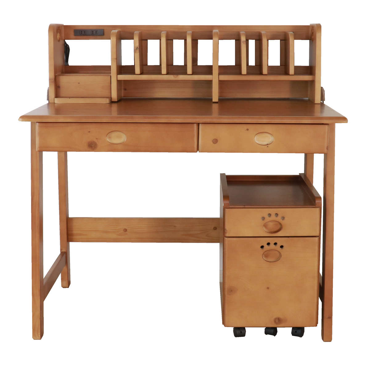 学習机 シンプル サイドワゴン 2口コンセント付き 天然木 幅100cm ( 学習デスク デスク 勉強机 リビング学習 机 上棚 ワゴン セット コンセント ラック 棚 本棚 引き出し コンパクト 北欧 パイン材 木製 子供 木目調 ネコ 猫 ) 【ブラウン】