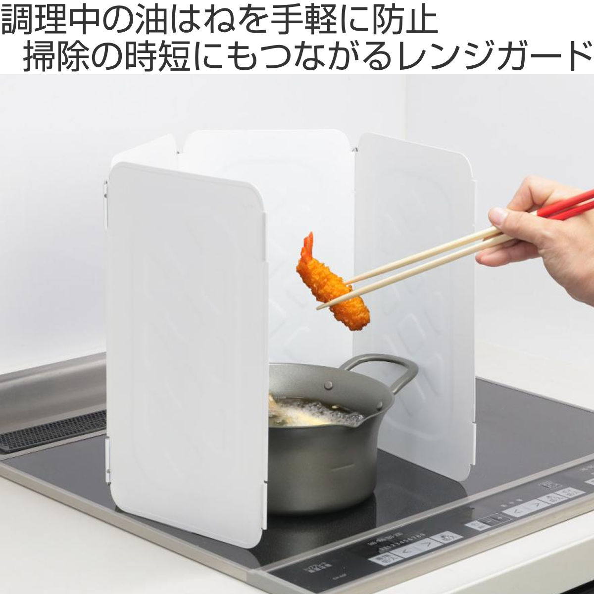 料理中の油はねや汁はねが気になるときに、サッと取り出して必要な部分だけ囲える便利なレンジガードです。「揚げ物や炒め物をすると、あちこちに油が飛んで掃除が大変…」そんなお悩みを解決します。