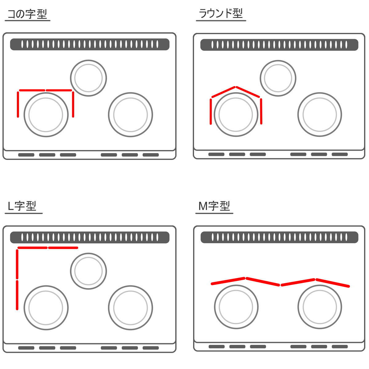 フライパンや鍋に沿わせて囲うように設置したり、L型にして角に置いたりと状況に応じた使い方ができます。必要な部分だけを効率よくガードでき、調理シーンに合わせて柔軟に活用できます。