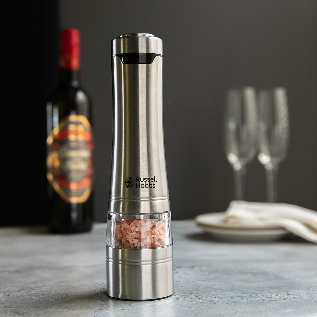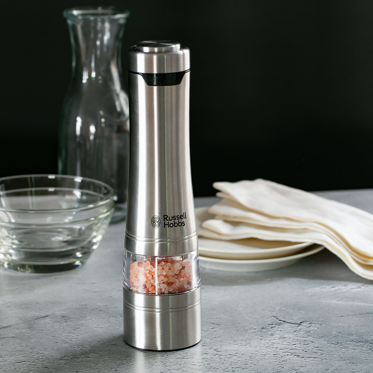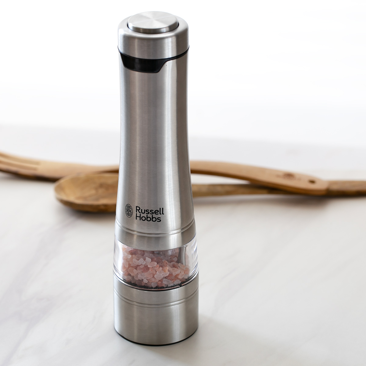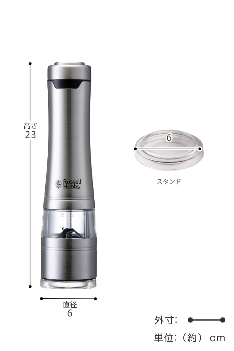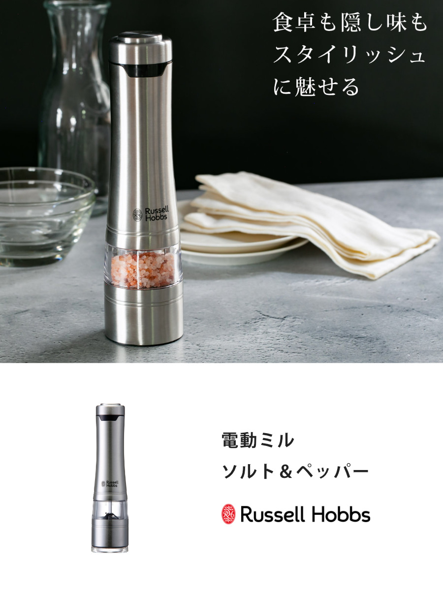 Russell Hobbs 電動ミル 1本 ソルト&ペッパーミル ( ラッセルホブス ミル LEDライト付き 電池式 ボタン式 ソルトミル ペッパーミル ワンプッシュ セラミック刃 スタンド付き 胡椒 岩塩 香辛料 おしゃれ )