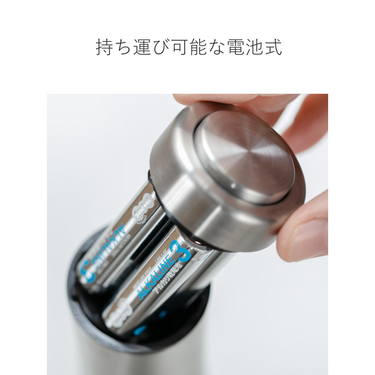 電池式乾電池(単3乾電池×4本)で持ち運びができるので、アウトドアにも最適です。キャンプやピクニックなど、外出先でも一味プラスしたいときにおすすめです。