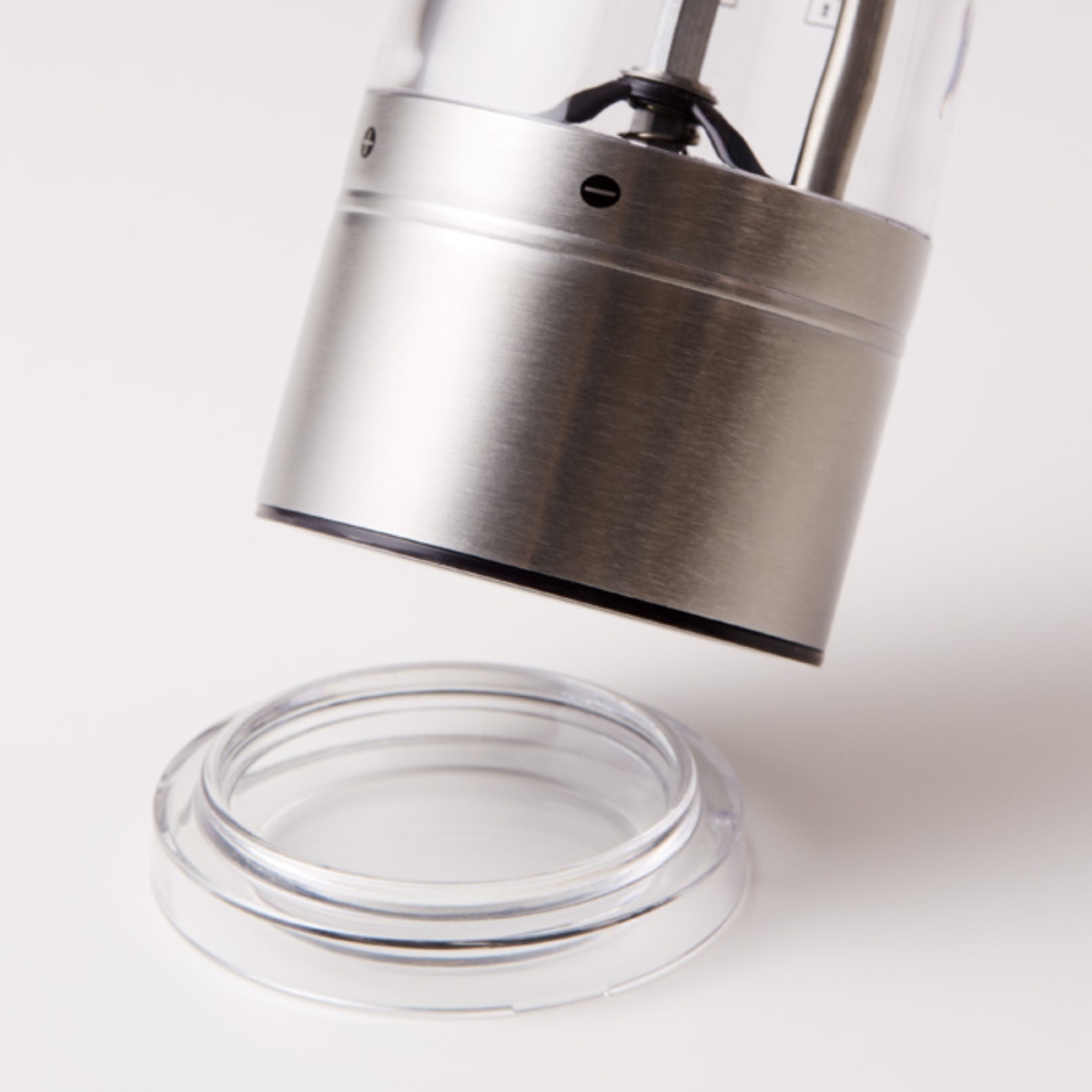 上部のボタンを押している間はLEDライトが点灯。スパイスの分量が見やすく、手元が暗いときにもどのくらい挽けたかを確認しやすいので、大変便利です。