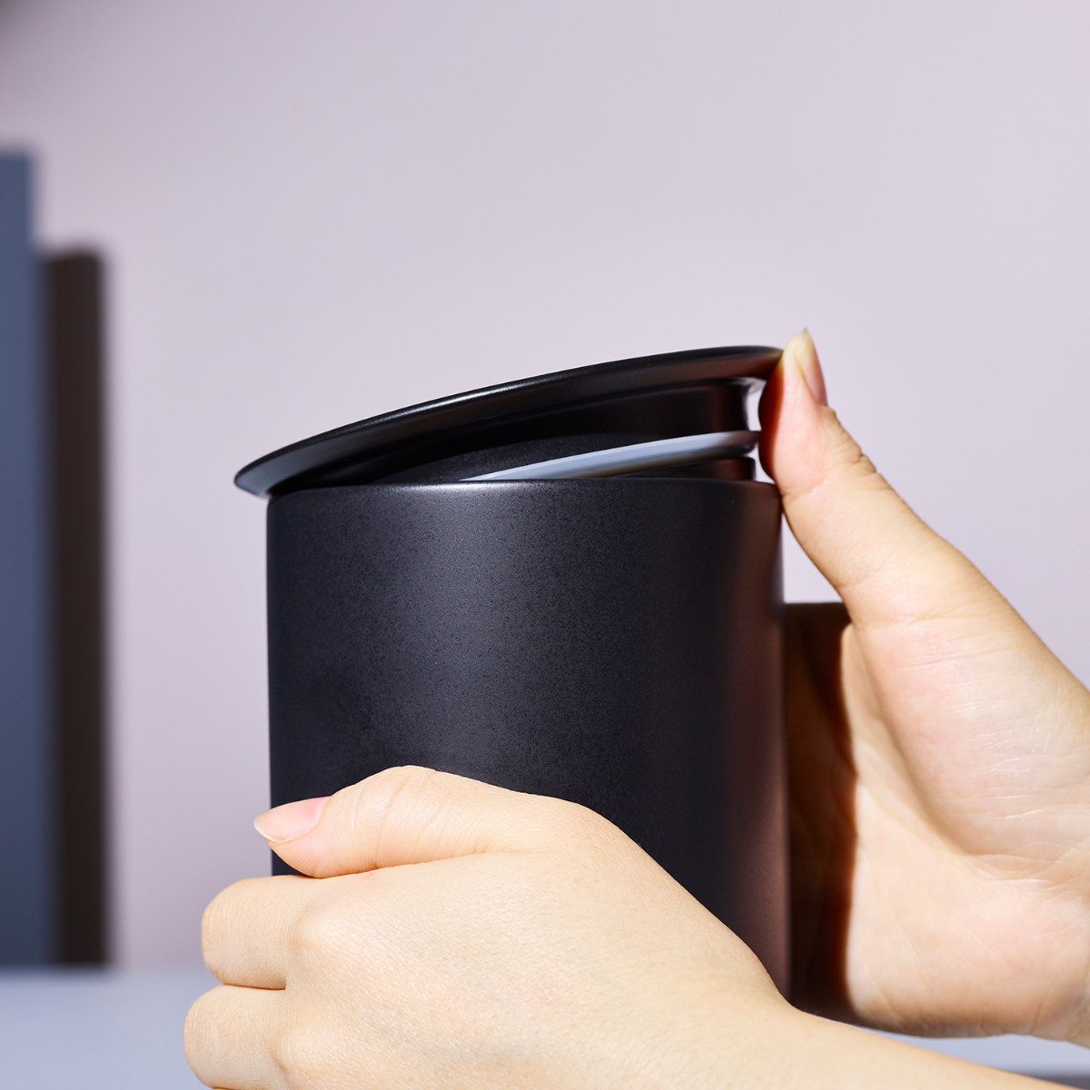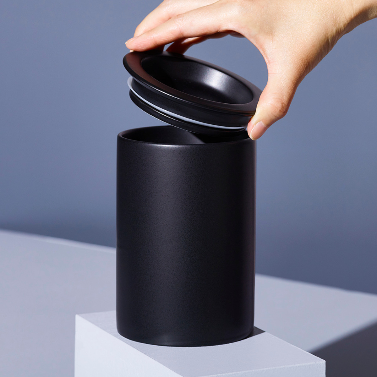本体にはしっかりと厚みがあり、また遮光性に優れた磁器製なので、光を通さずコーヒー豆の劣化を防ぎます。