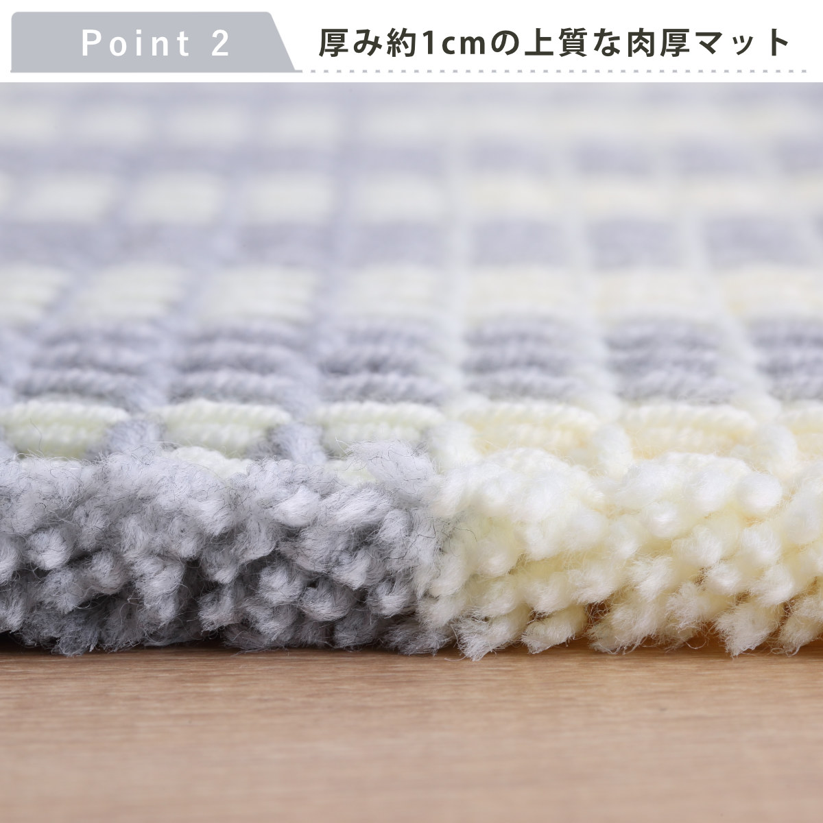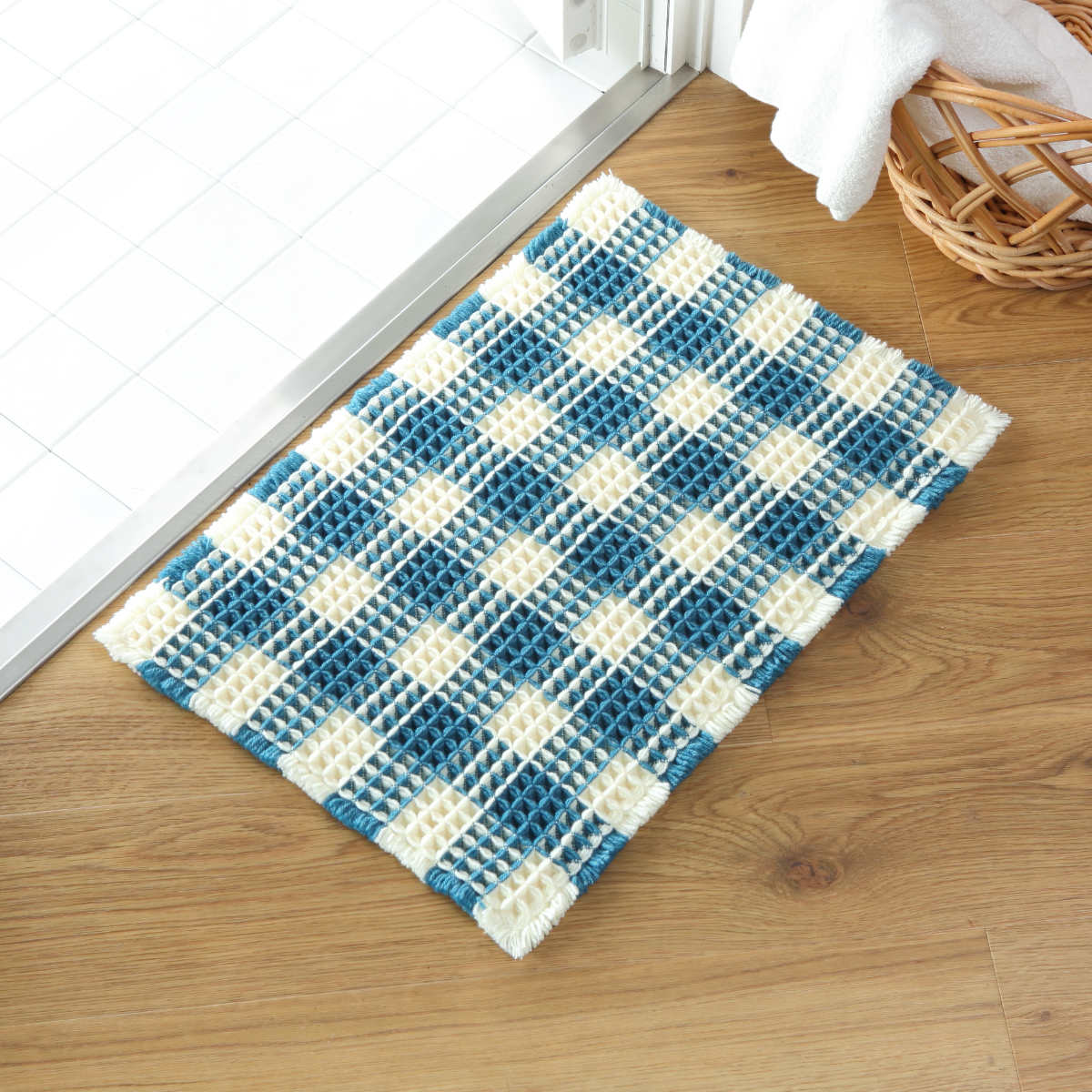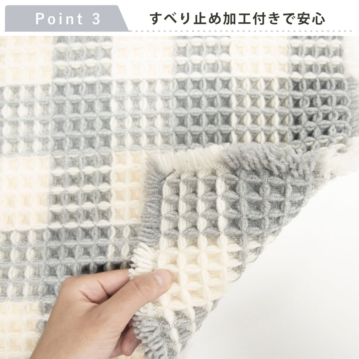 チェック模様がかわいらしい、ワッフル地のバスマットです。銀イオンの抗菌力・防臭・消臭加工付きで菌や臭いをブロックし、吸水効果も抜群です。お風呂上がりの足元を、いつでも清潔に保ちます。