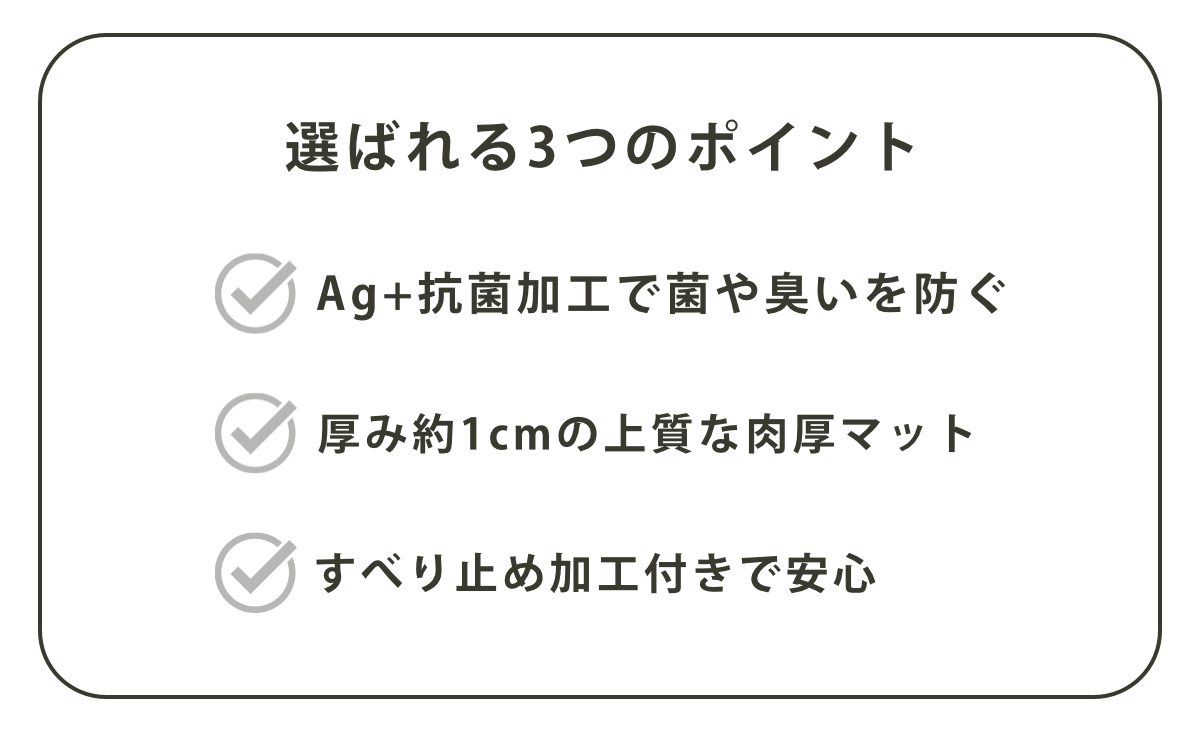 マットの裏面にはすべり止め加工が施されています。小さなお子さまやご年配の方がいらっしゃるご家庭でも安心です。