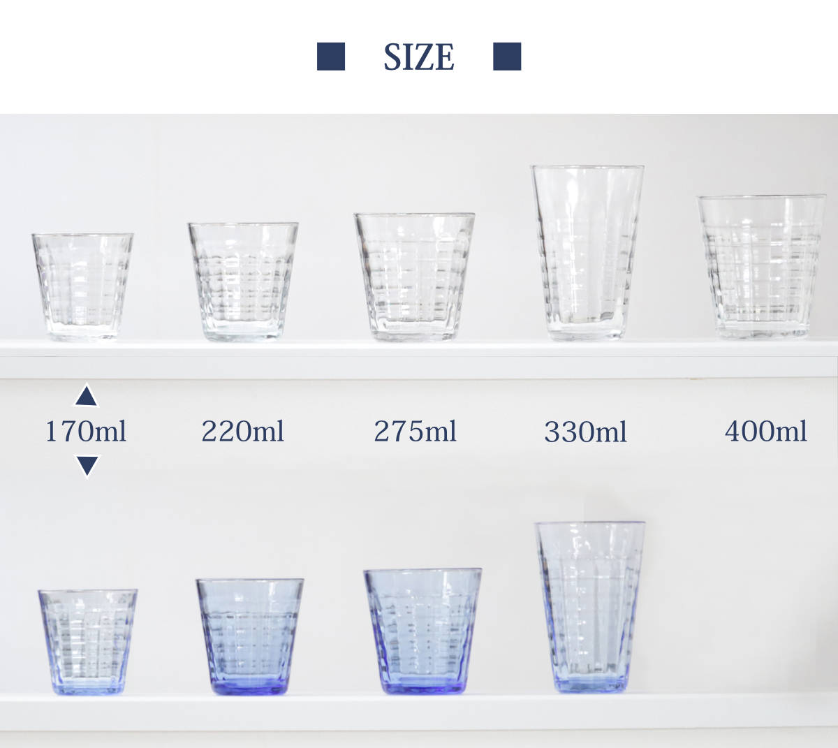 | クリア マリン 170ml | クリア マリン 220ml | クリア マリン 275ml | クリア マリン 330ml | クリア 400ml | クリア 500ml |