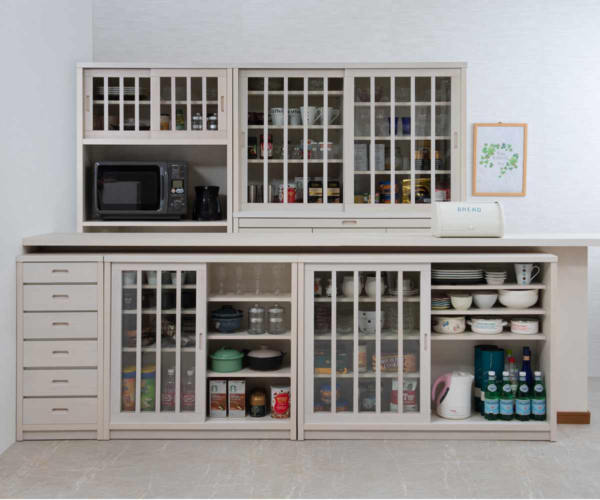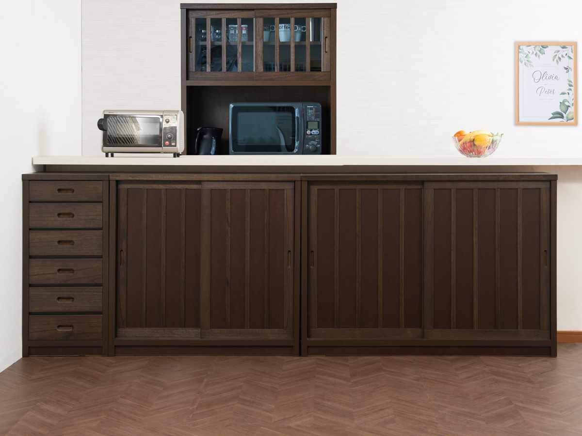 ![]() 和モダン調カウンター下収納 ガラス引き戸 幅90.5cm | ![]() 和モダン調カウンター下収納 ガラス引き戸 幅120.5cm |