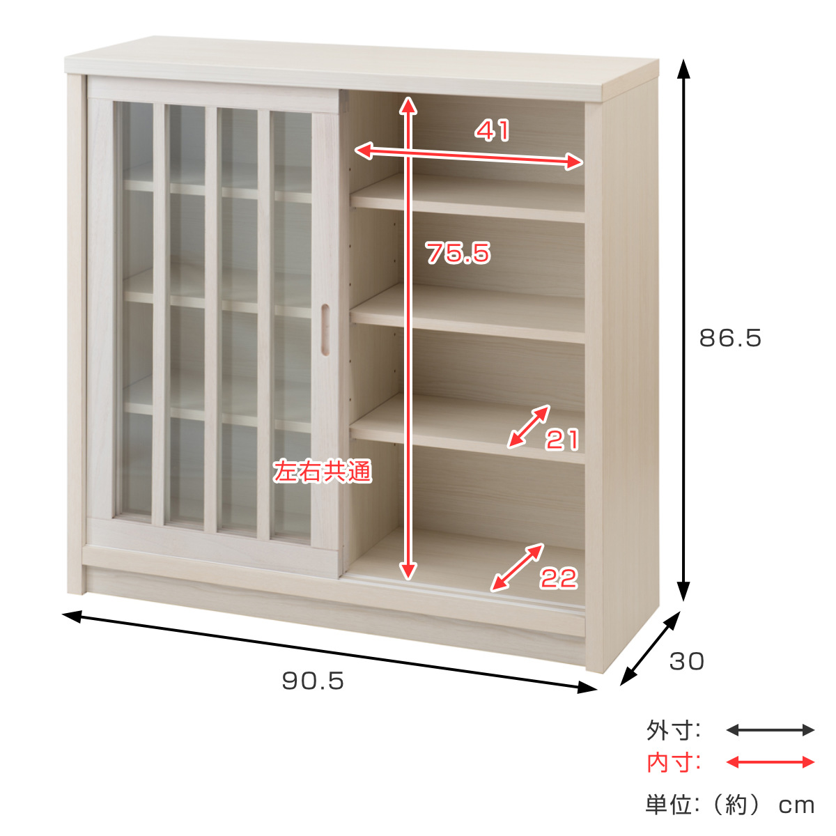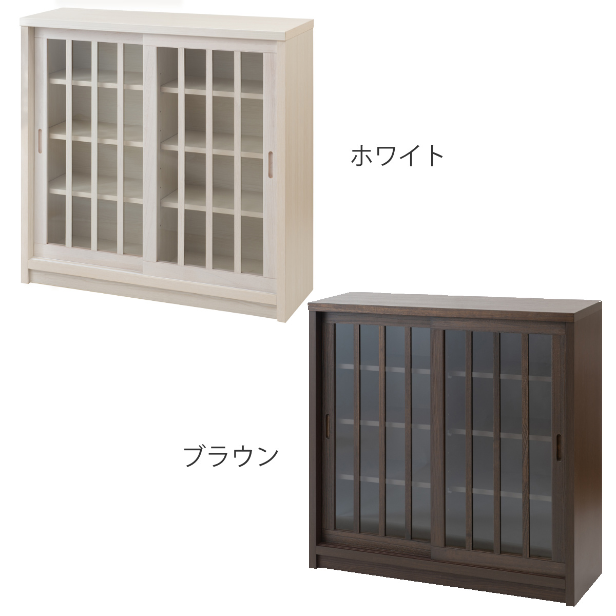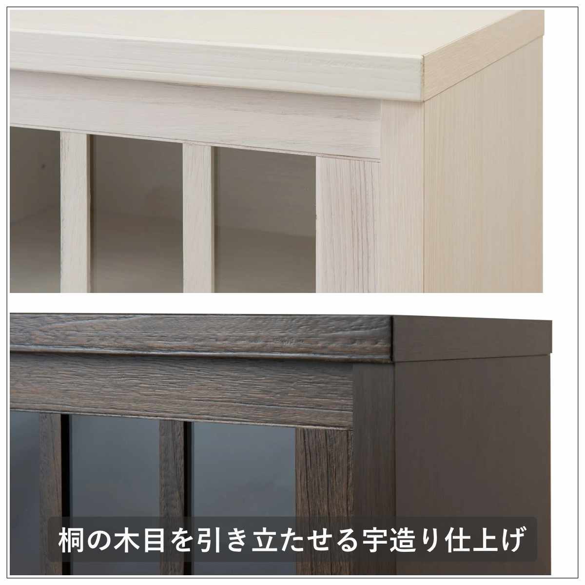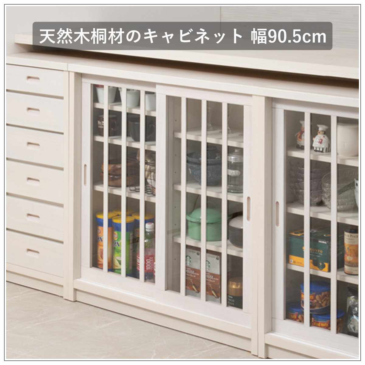 カウンター下収納 幅90.5cm ガラス引き戸 和モダン調 日本製 完成品 ( カウンター下 天然木 桐 リビング キッチン収納 収納棚 食器棚 キャビネット 収納 棚 ラック 家具 木製 可動棚 ホワイトブラウン シンプル ) 【ブラウン】
