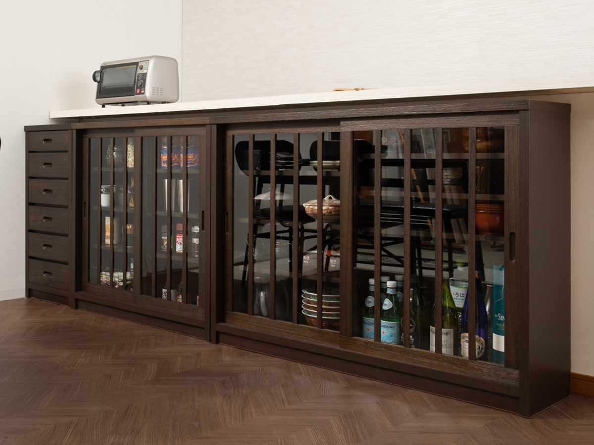![]() 和モダン調カウンター下収納 ガラス引き戸 幅90.5cm 【▲このページの商品】 | ![]() 和モダン調カウンター下収納 ガラス引き戸 幅120.5cm |