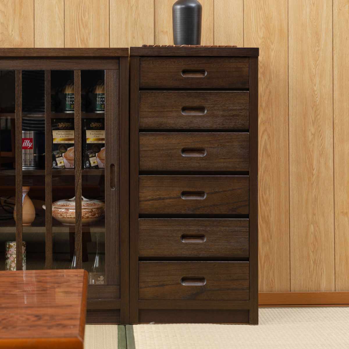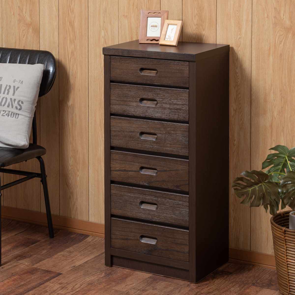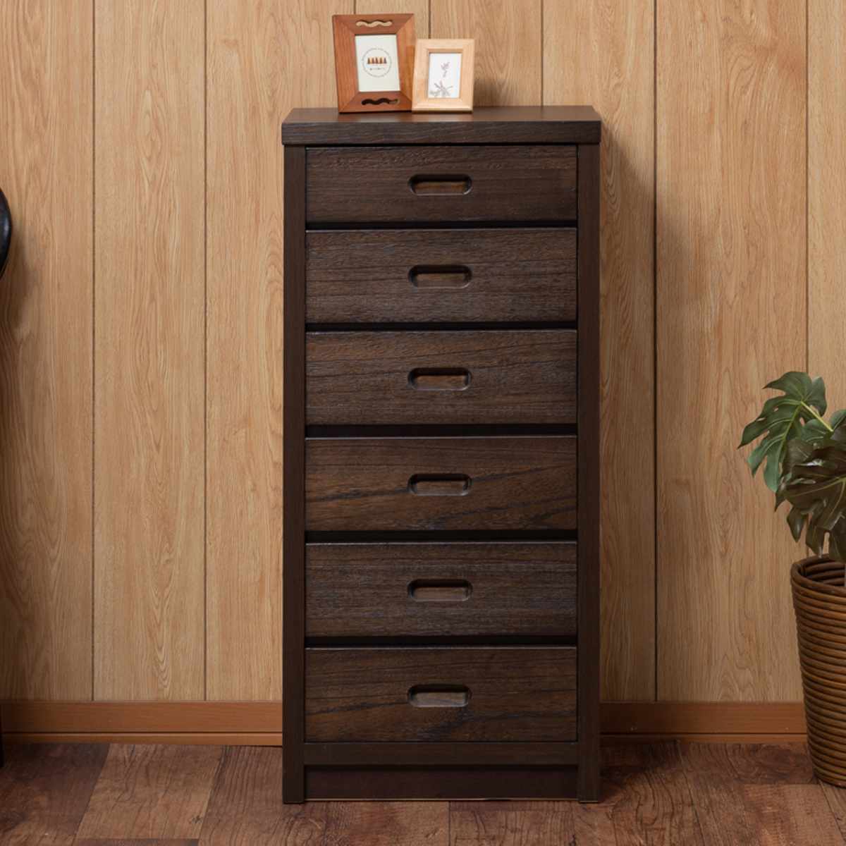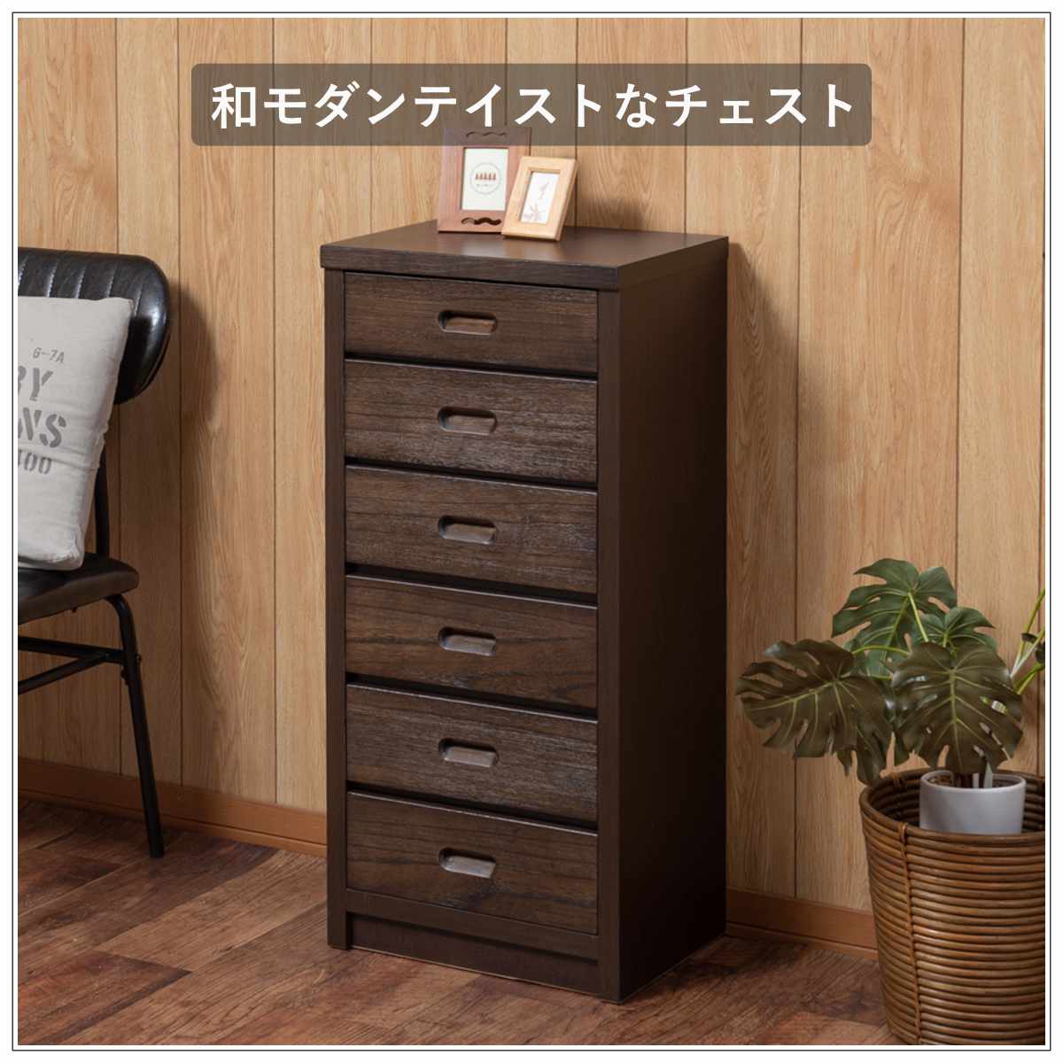 チェスト 幅40.5cm 6段 和モダン調 日本製 完成品 ( スリムラック 収納チェスト 収納 引き出し キャビネット 天然木 桐 木製 家具 すきま収納 ホワイト ブラウン おしゃれ ) 【ブラウン】