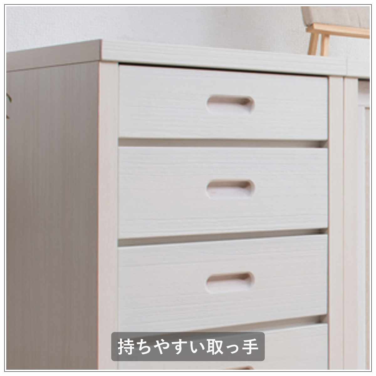 桐の木目を引き立たせたうづくり仕上げの和モダンテイストなチェストです。天然木に凹凸感を出し、高級感漂う仕上げになっています。和室・洋室ともによく馴染みます。幅も約40.5cmとスリムでちょっとした隙間にも置けます。