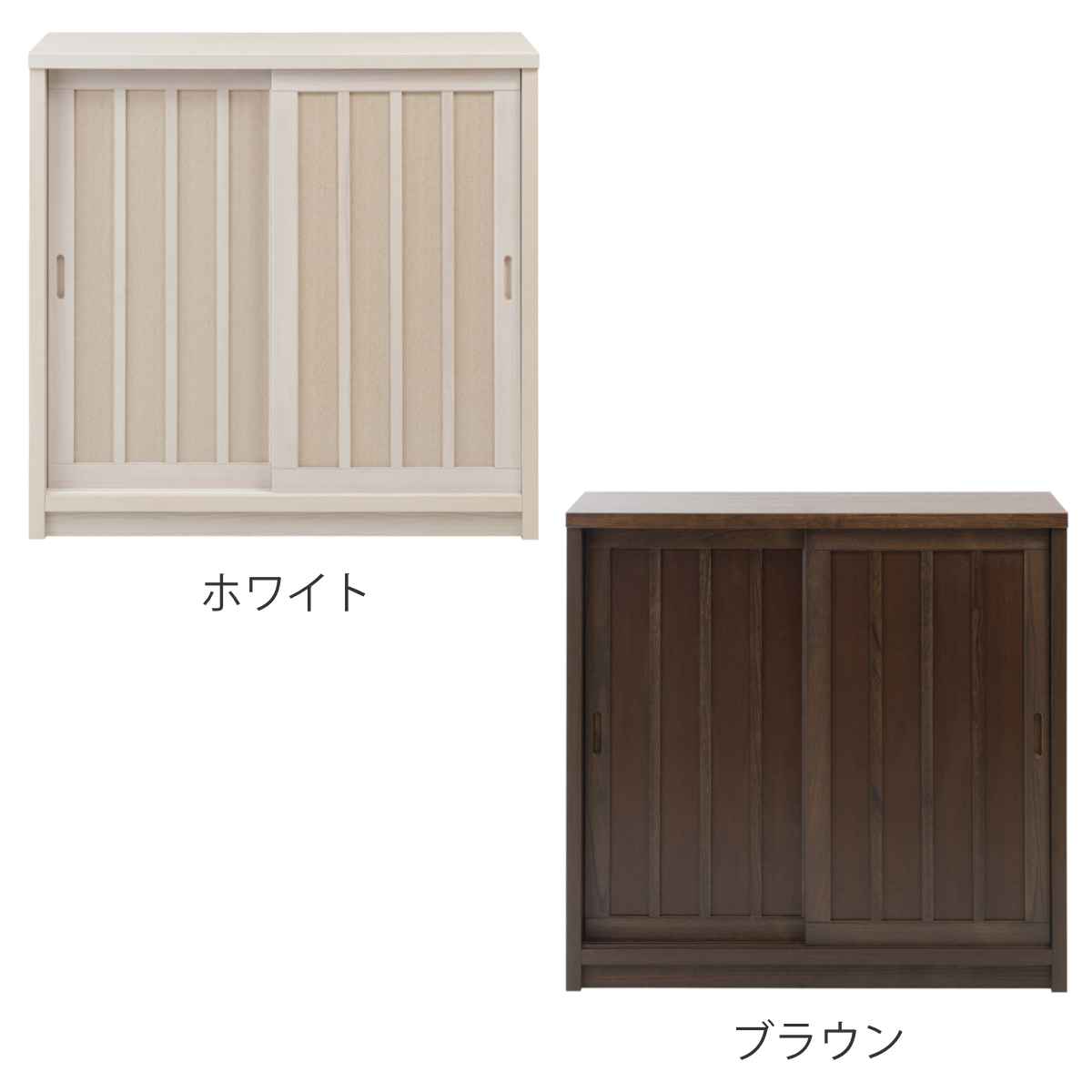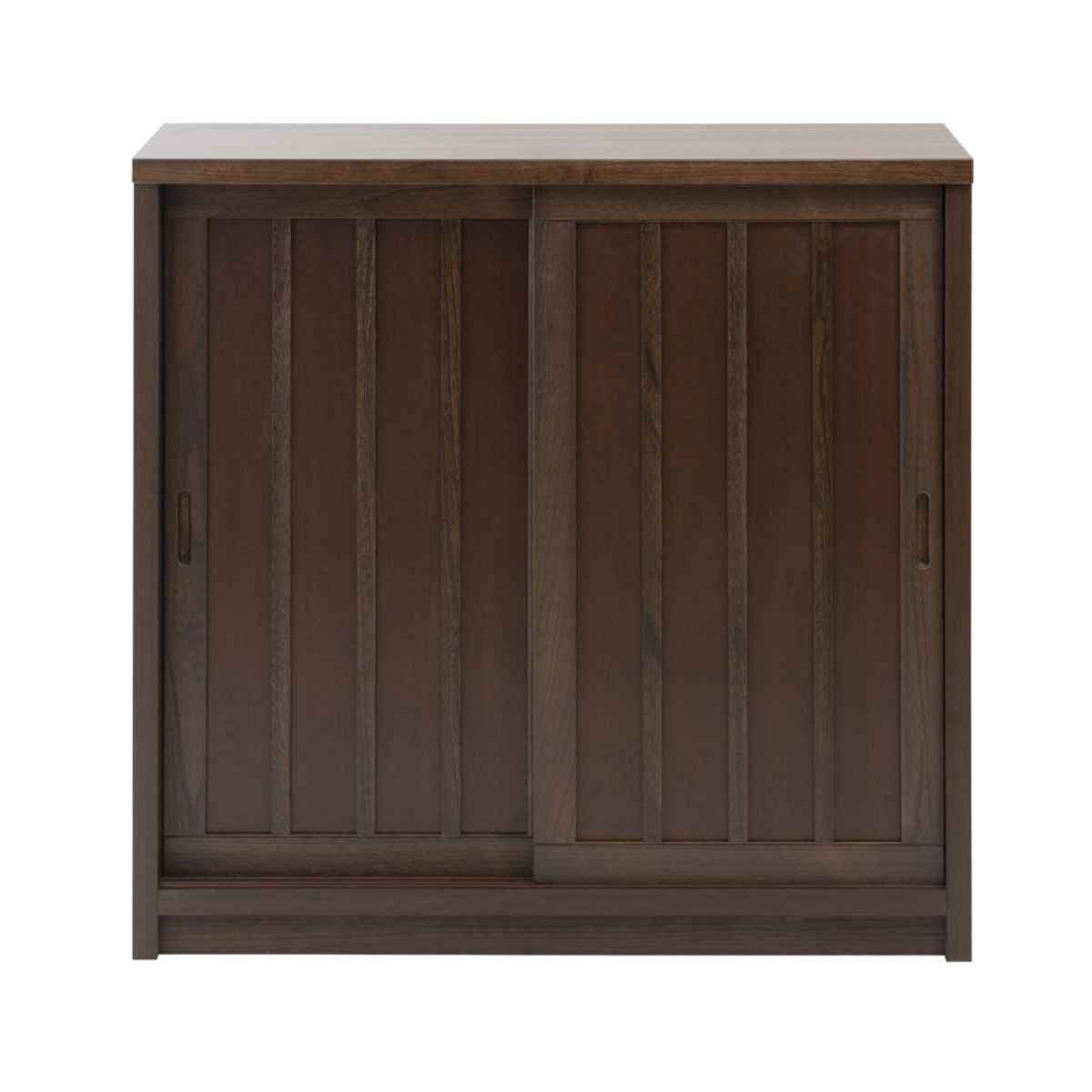 キャビネット 幅90.5cm 板引き戸 縦格子 和モダン調 日本製 完成品 ( 棚 ラック 収納チェスト 収納 格子 引き戸 天然木 桐 木製 家具 食器棚 可動棚 ホワイト ブラウン おしゃれ ) 【ブラウン】