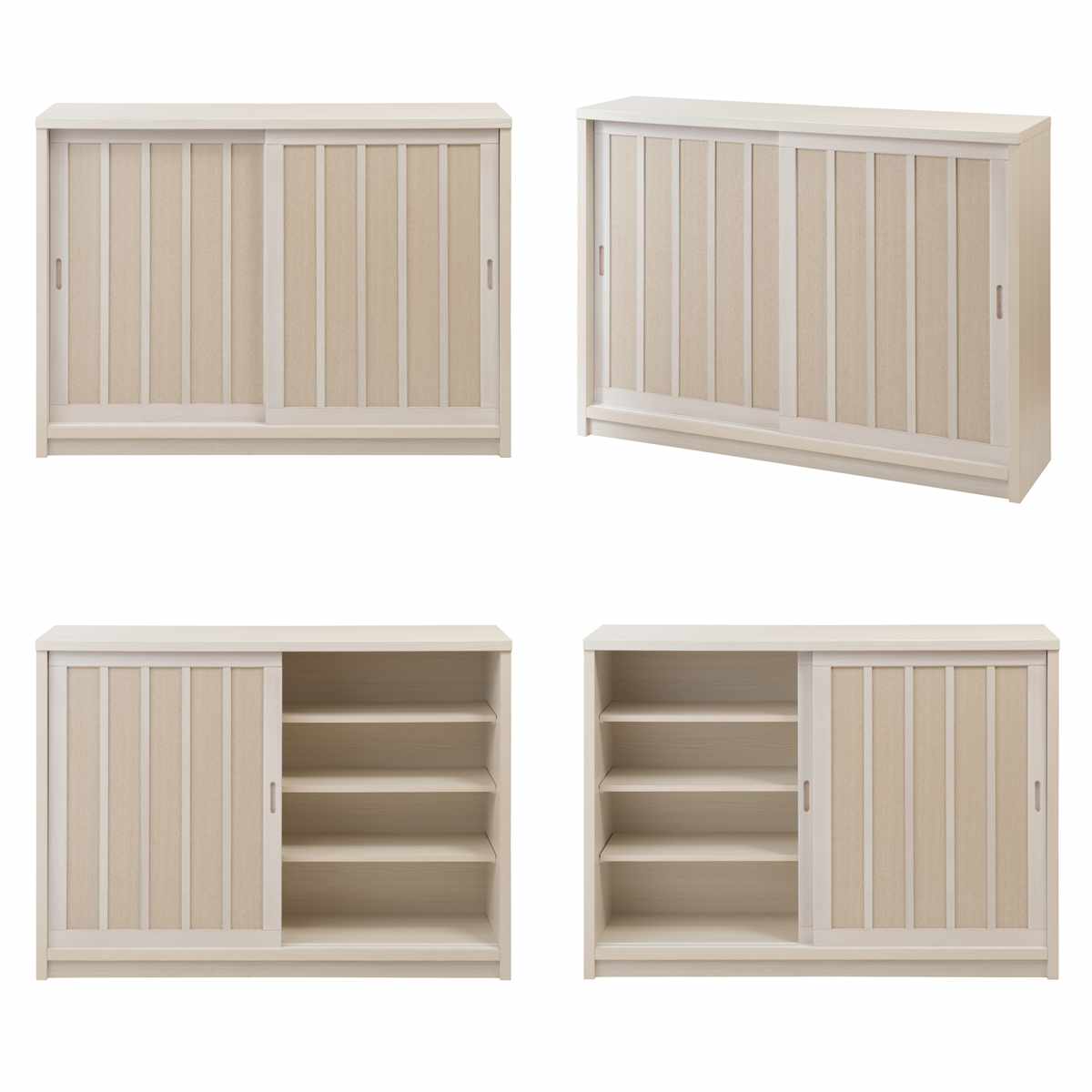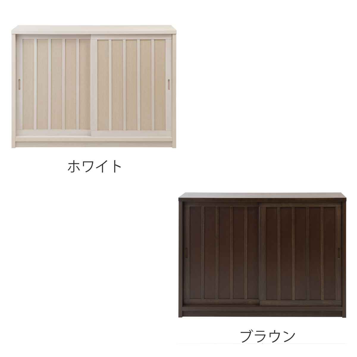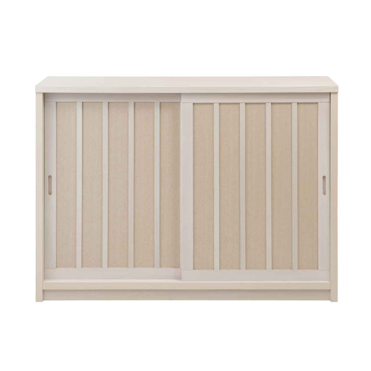 キャビネット 幅120.5cm 板引き戸 縦格子 和モダン調 日本製 完成品 ( 棚 ラック 収納チェスト 収納 格子 引き戸 天然木 桐 木製 家具 食器棚 可動棚 ホワイト ブラウン おしゃれ ) 【ホワイト】