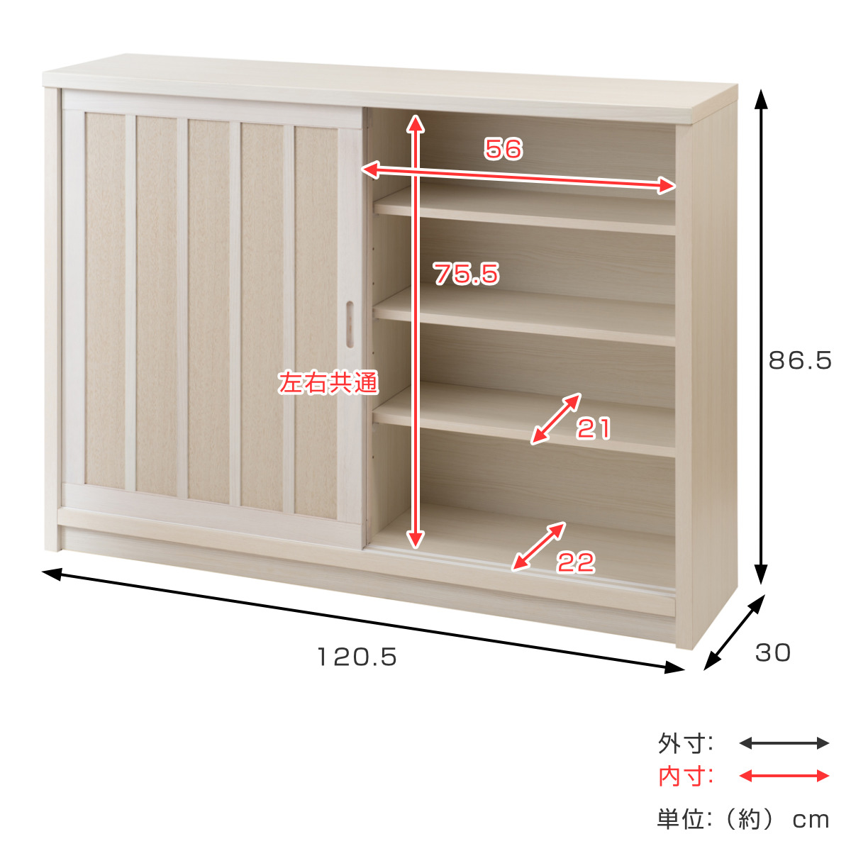 | サイズ | 約 幅120.5×奥行30×高さ86.5(cm) |
