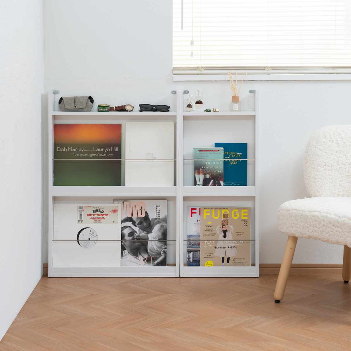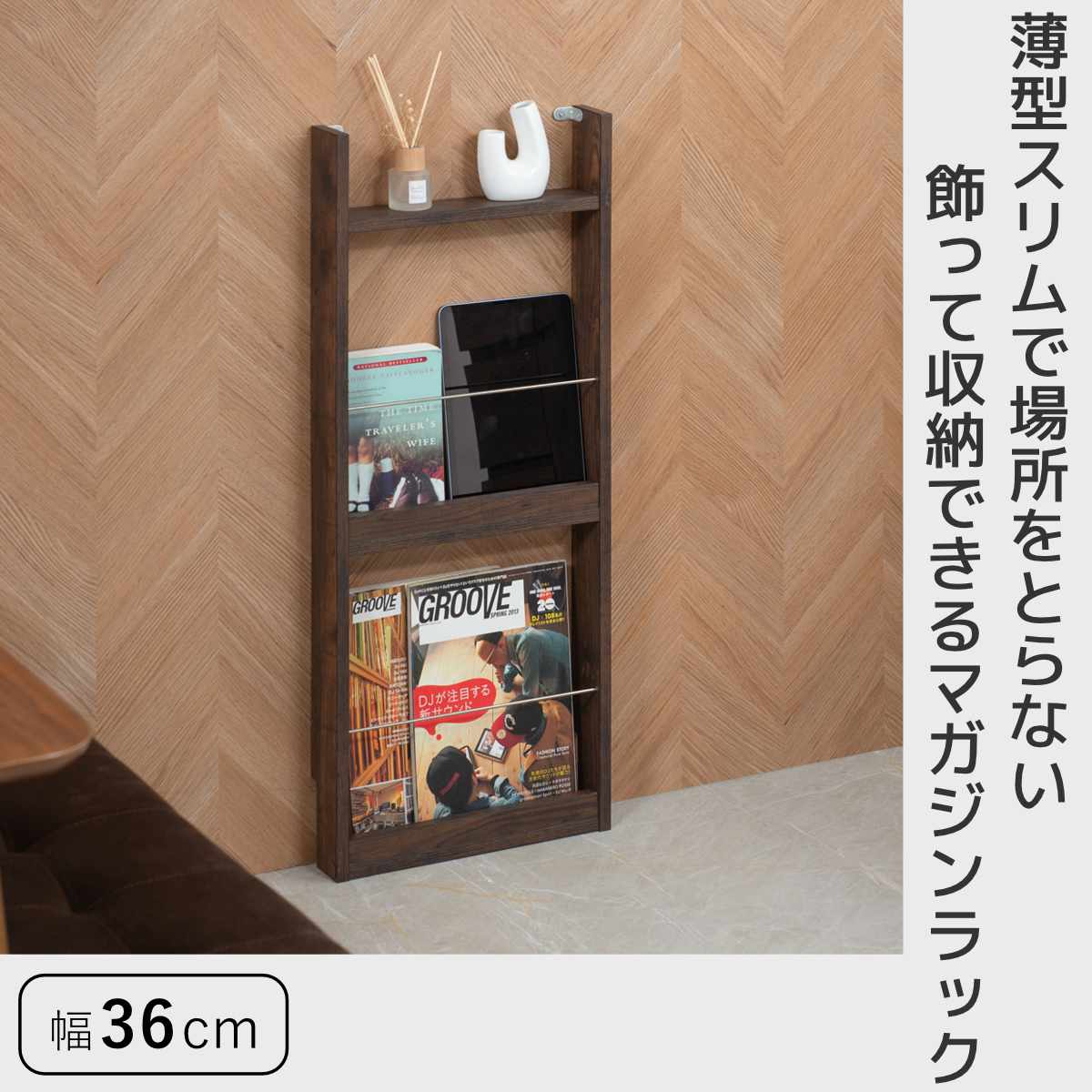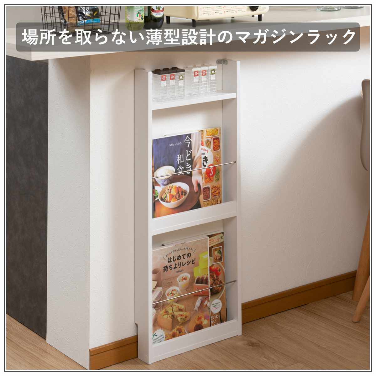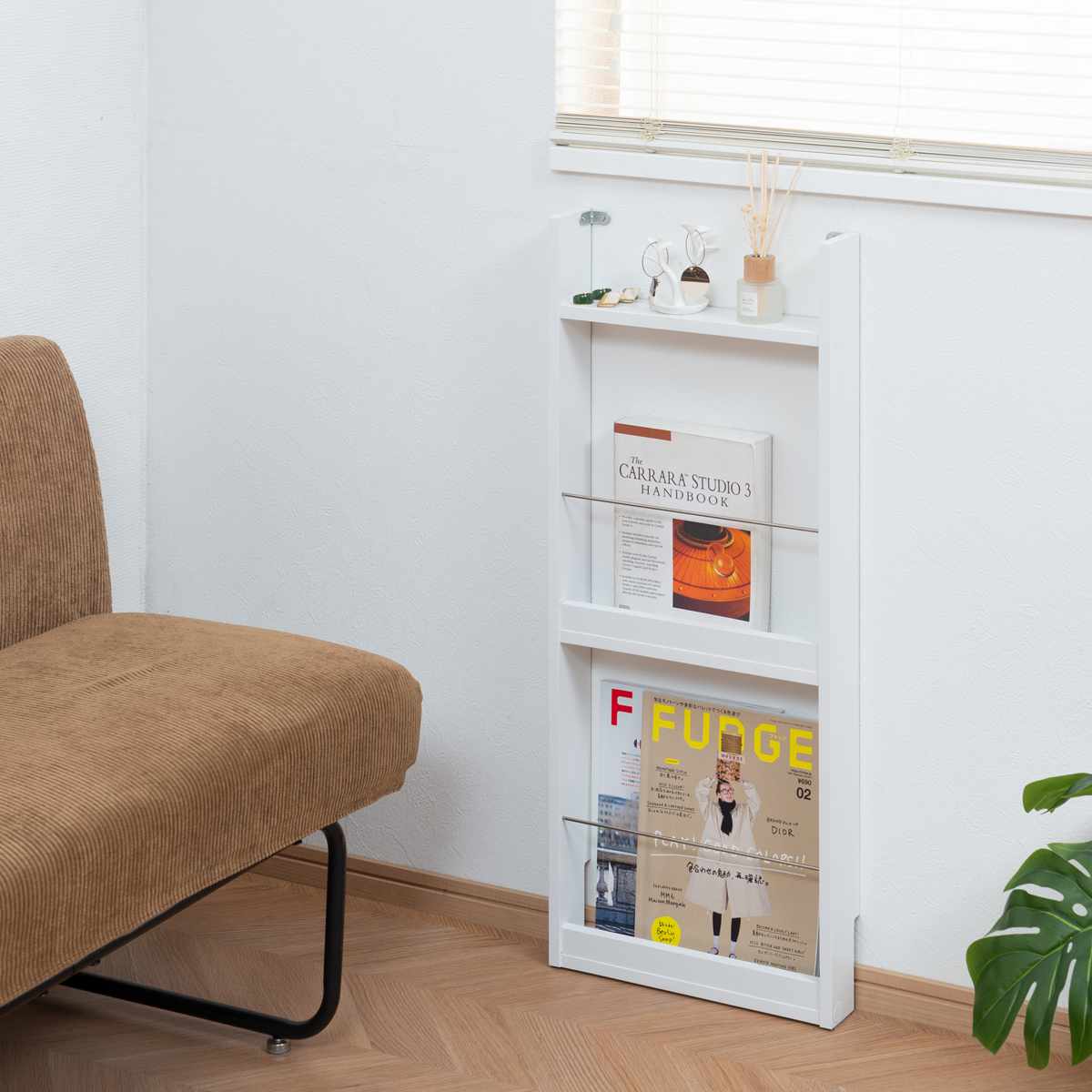 マガジンラック 幅36cm 2段 薄型 ( 本棚 雑誌収納 ブックスタンド シェルフ ディスプレイラック 飾り棚 ブックラック 壁寄せ ブックシェルフ 本 ラック 収納 ブラウン ホワイト おしゃれ ) 【ホワイト】