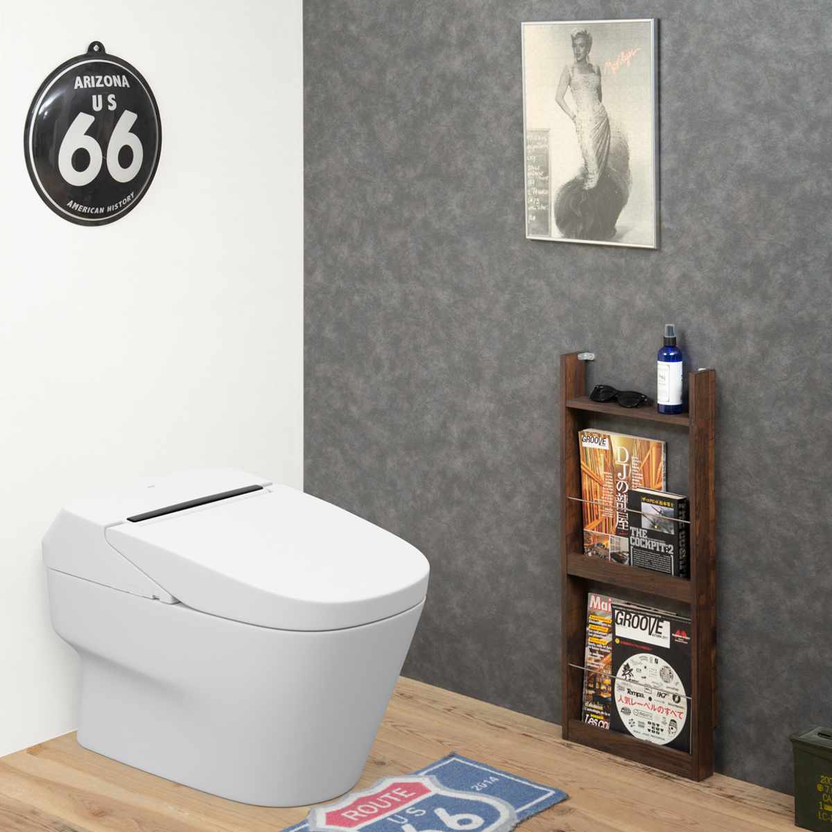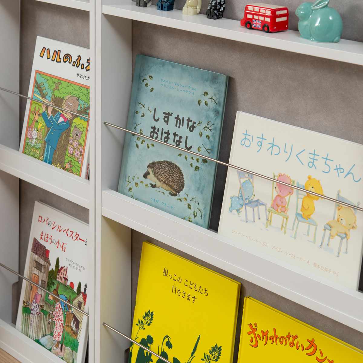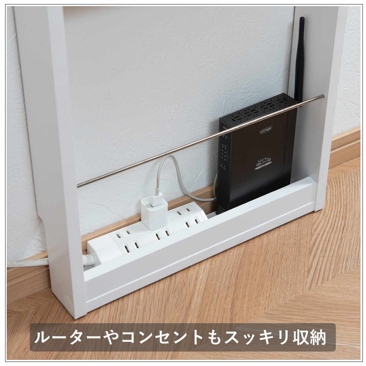 中段、下段のスペースには、雑誌や絵本などを飾りながら収納できるほか、薄型のルーターやタブレット、スリッパなどもキレイに片付けられます。