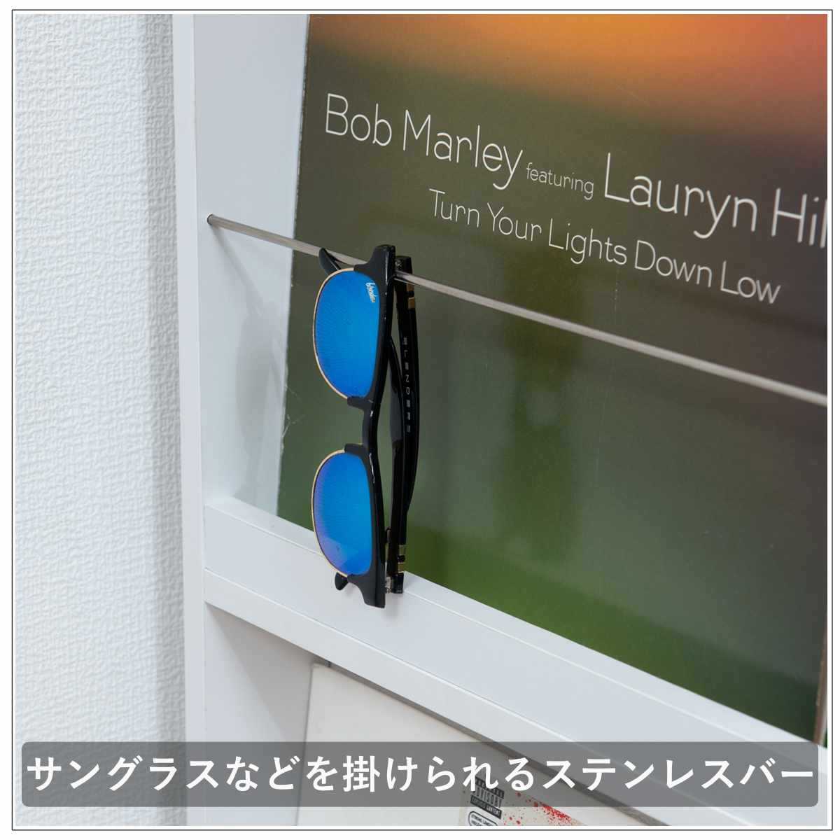 ステンレスバーは、雑誌などの落下を防ぐだけでなく、キーホルダーやサングラスを掛けるのにも便利です。