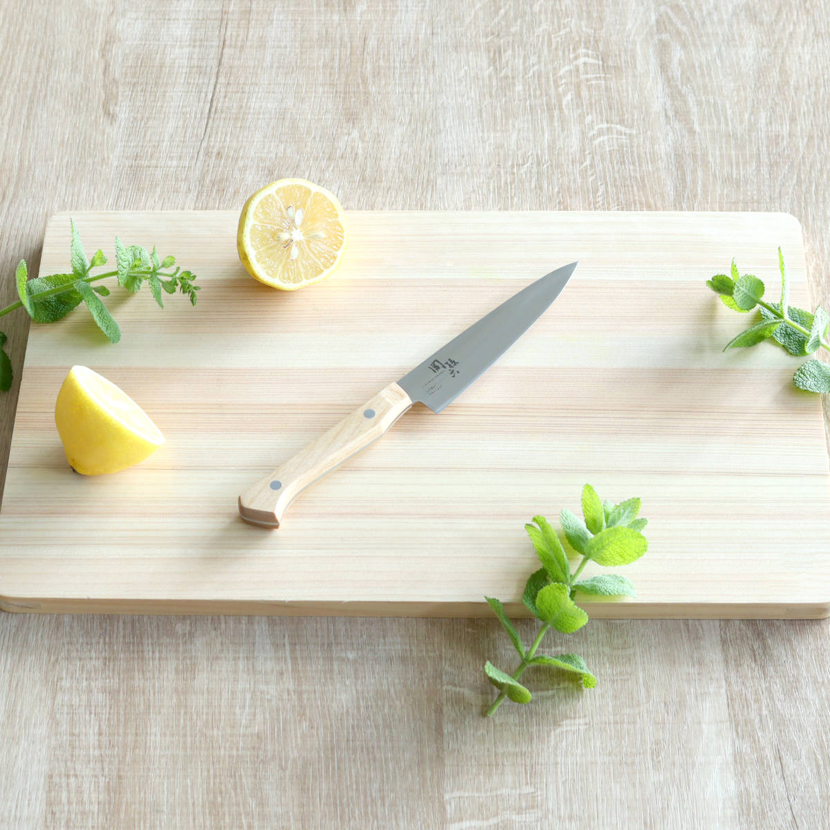 白木のハンドルが美しい包丁「しらあいシリーズ」には、ペティナイフ、小三徳包丁、三徳包丁、牛刀があるので、用途に合わせてお選びいただけます。