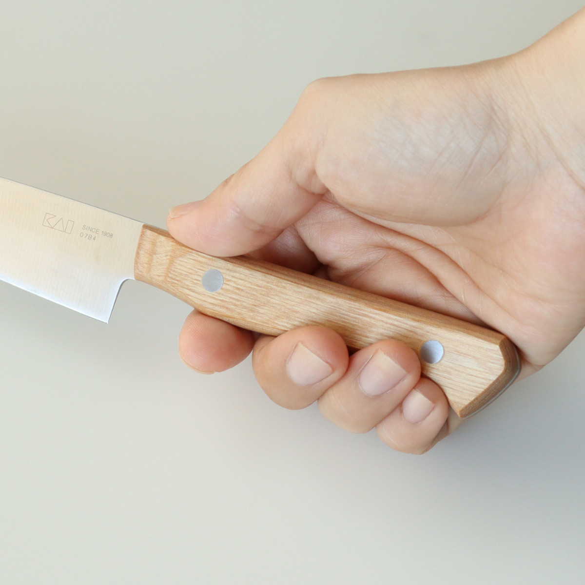 風合いが活きる美しい白木のハンドルが、優しくナチュラルな雰囲気を演出します。白木の持つ柔らかさに加え、握りやすさにこだわった指がかりのよい新形状で、日々の調理作業を快適にしてくれます。