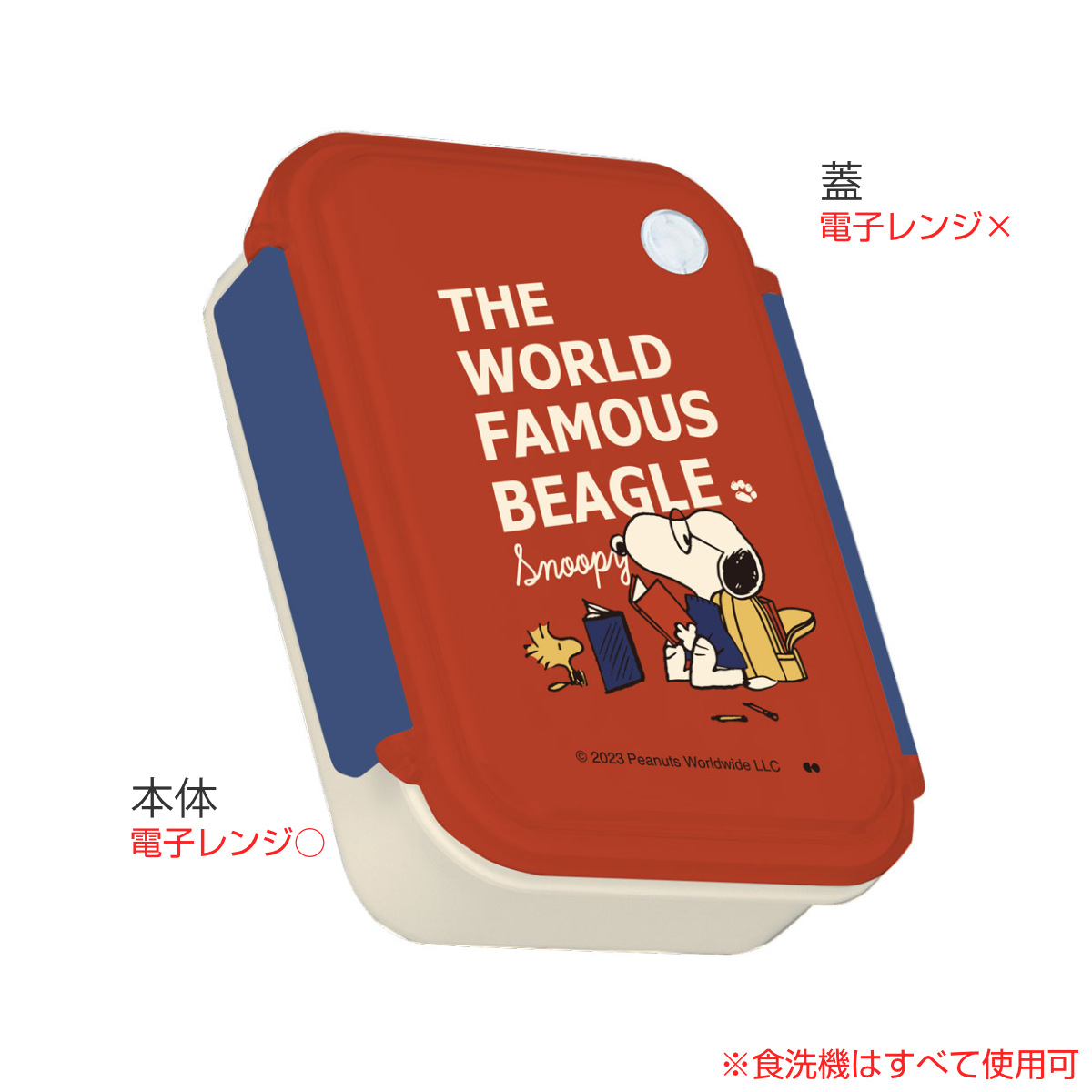 小食な方にもぴったりな500mlサイズのお弁当箱です。スヌーピーとウッドストックが描かれているレトロで可愛い色合いのデザインです。蓋が固くなっても、吸排気弁がついているので開けやすい仕様です。蓋を外せば電子レンジに入れることができ、食後は蓋も含めて食洗機にかけられるのでお手入れが楽です。