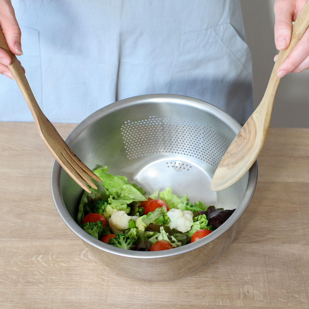穴が開いているのは片側のみなので、茹でたパスタを湯切りしてそのままソースと和えられます。乾物の戻しから水切り、味付けまでこれひとつで完結し、時短と洗い物削減を同時に叶えます。